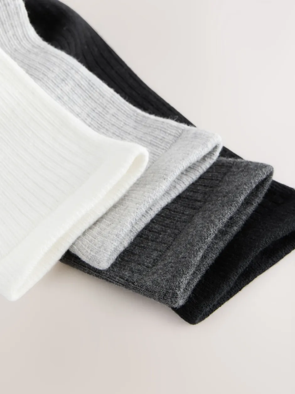 Next Noir/Blanc – Lot de 4 paires de socquettes en maille côtelée New