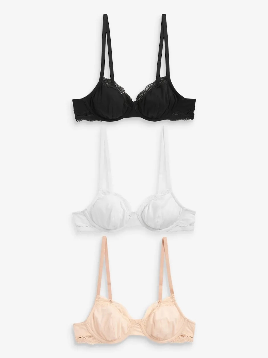 Next Noir/ Blanc/ Rose pâle Nude – Lot de 3 soutiens-gorge en mélange de coton Ultimate Comfort balconnets non rembourré Best
