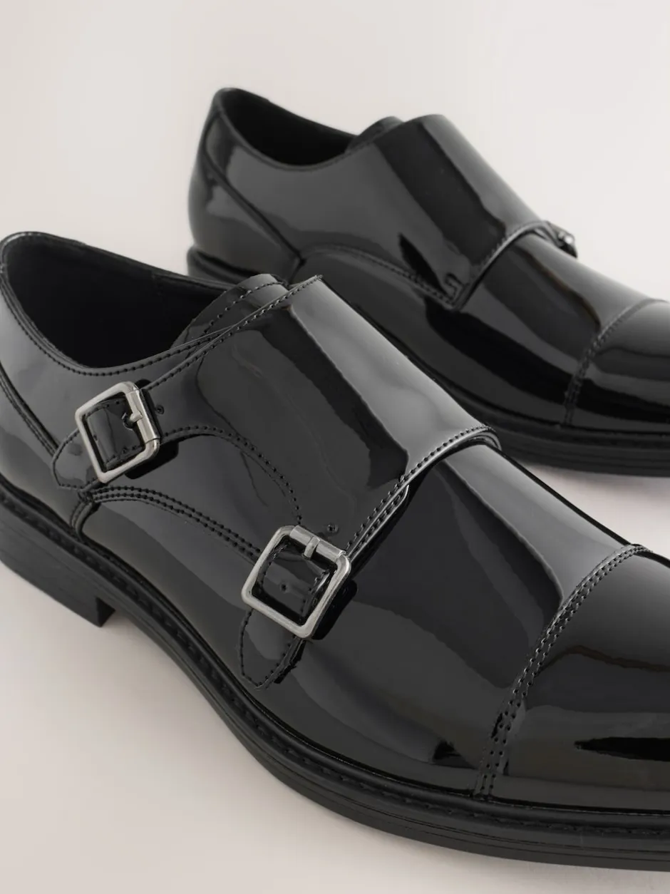 Next Noir – Chaussures vernies Toecap Double Monk New