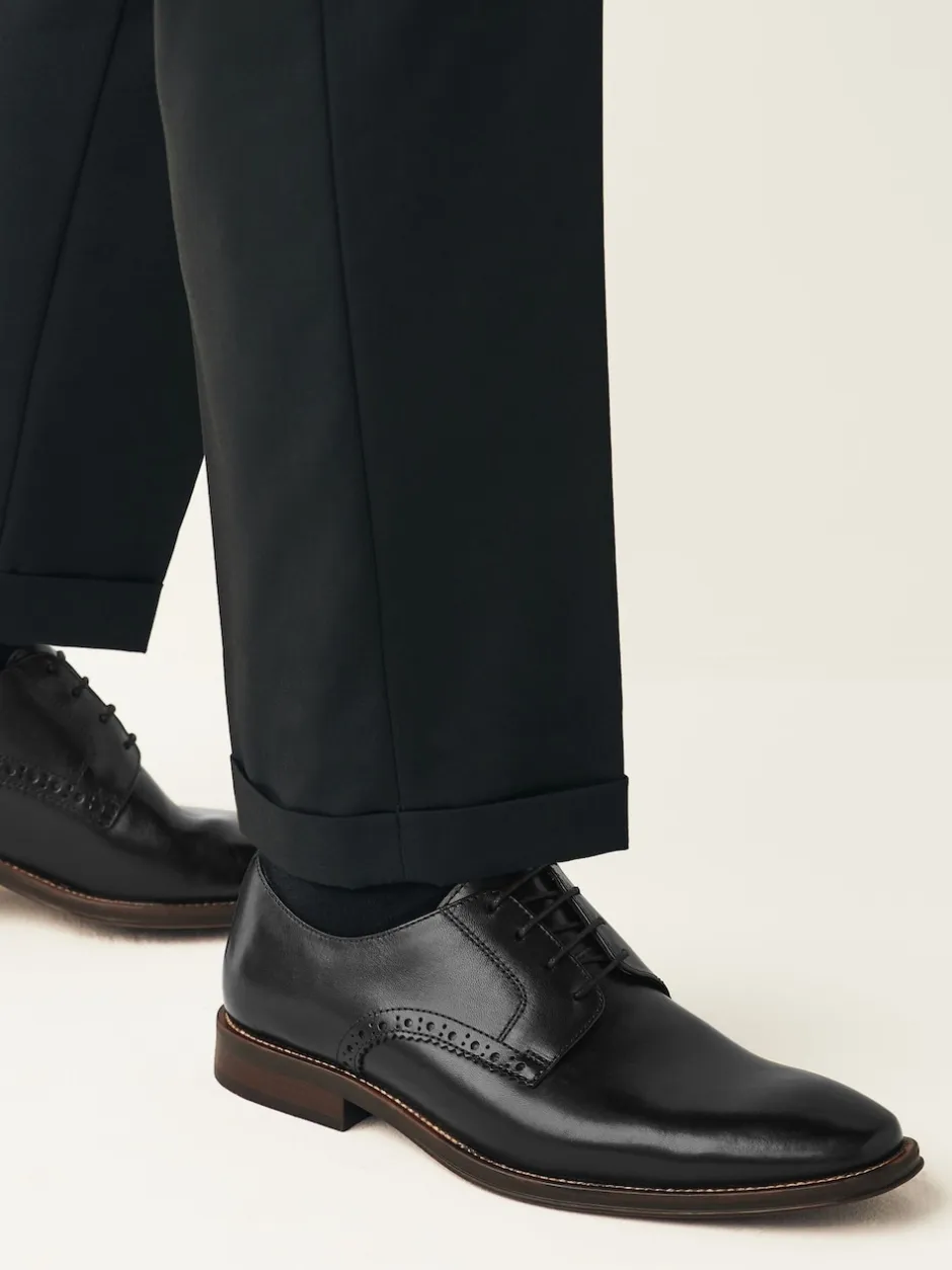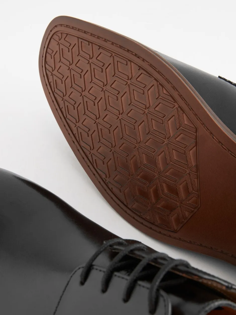Next Noir – Coupe large – Chaussures Derbies en cuir à semelle contrastante New