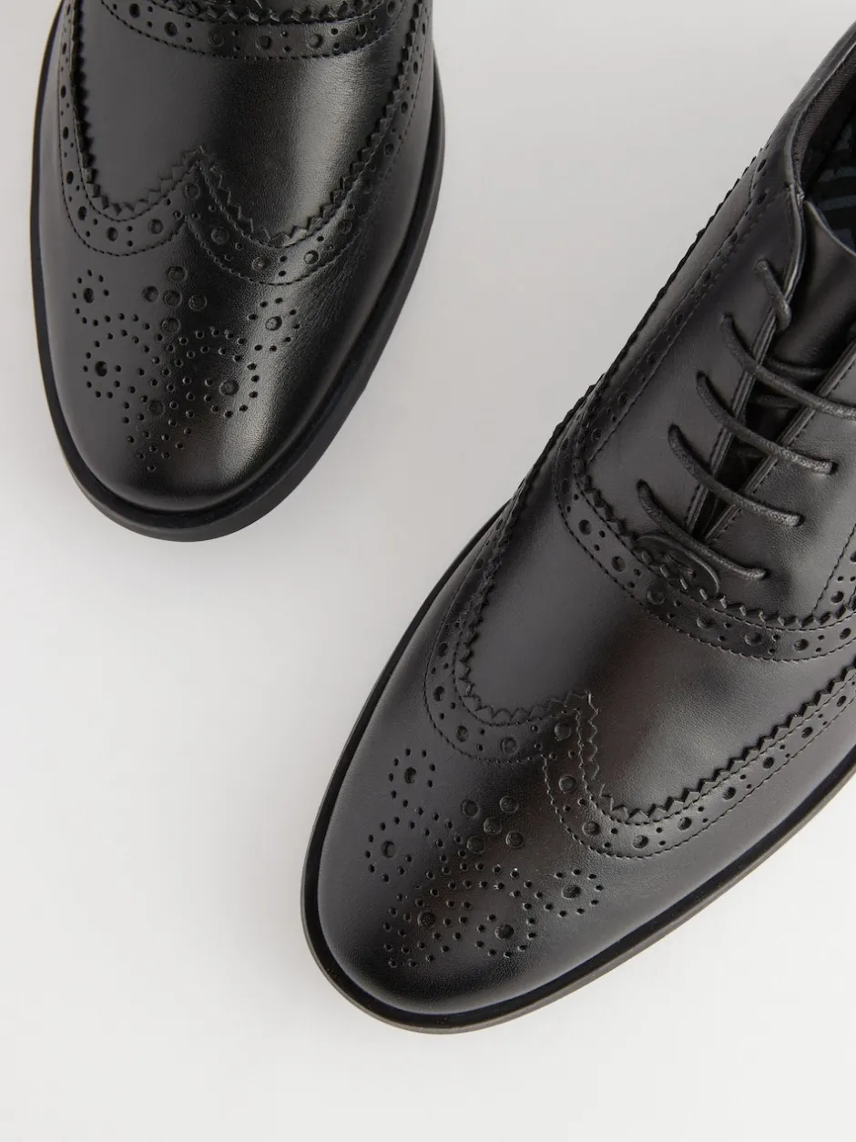 Next Noir – Coupe large – Chaussures Richelieu Oxford en cuir Sale