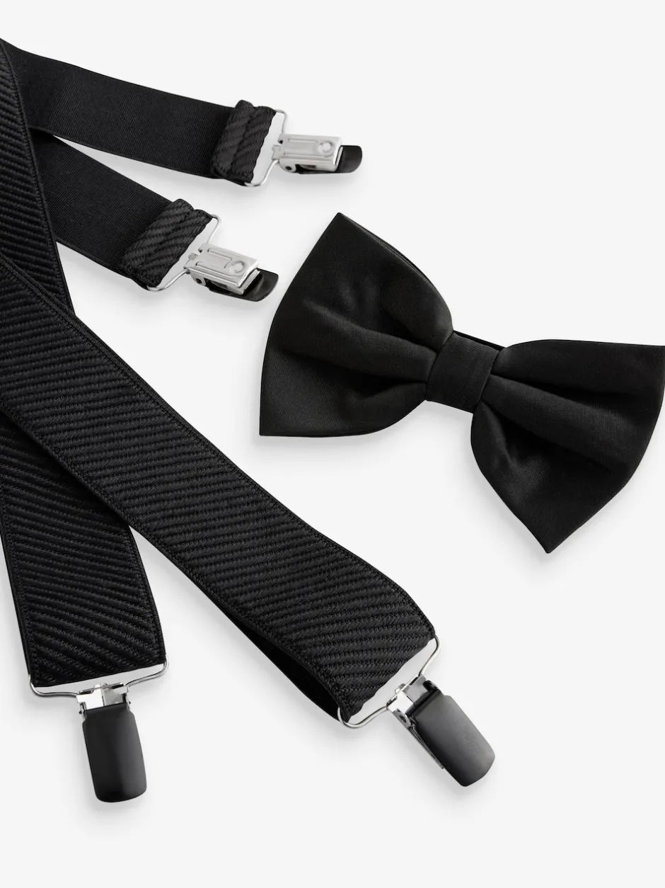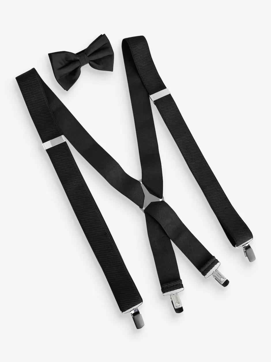 Next Noir – Ensemble bretelles larges et nœud papillon Best