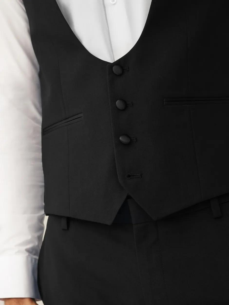 Lavable en machine. Matière principale 62% Polyester recyclé, 35% Viscose, 3% Polyester. Doublure intérieure 100% de polyester recyclé. Doublure extérieure 100% de polyester recyclé. Pour consulter notre guide des coupes de costumes pour hommes, CLIQUEZ ICI
