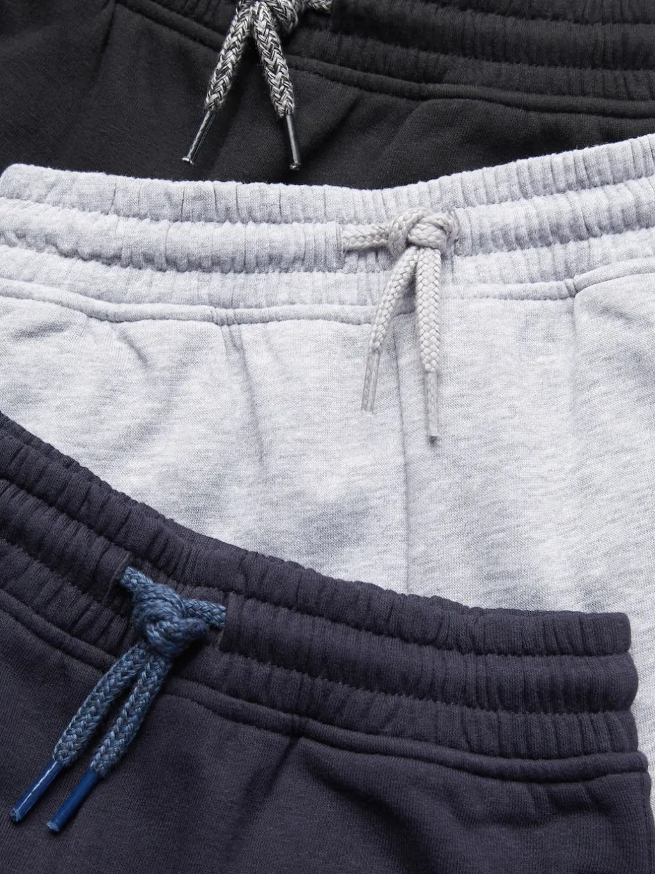 Lavable en machine. 2 x Jogging bleu marine noir 80 % coton, 20 % polyester recyclé. Joggings gris 70 % coton, 22 % polyester recyclé, 8 % viscose.