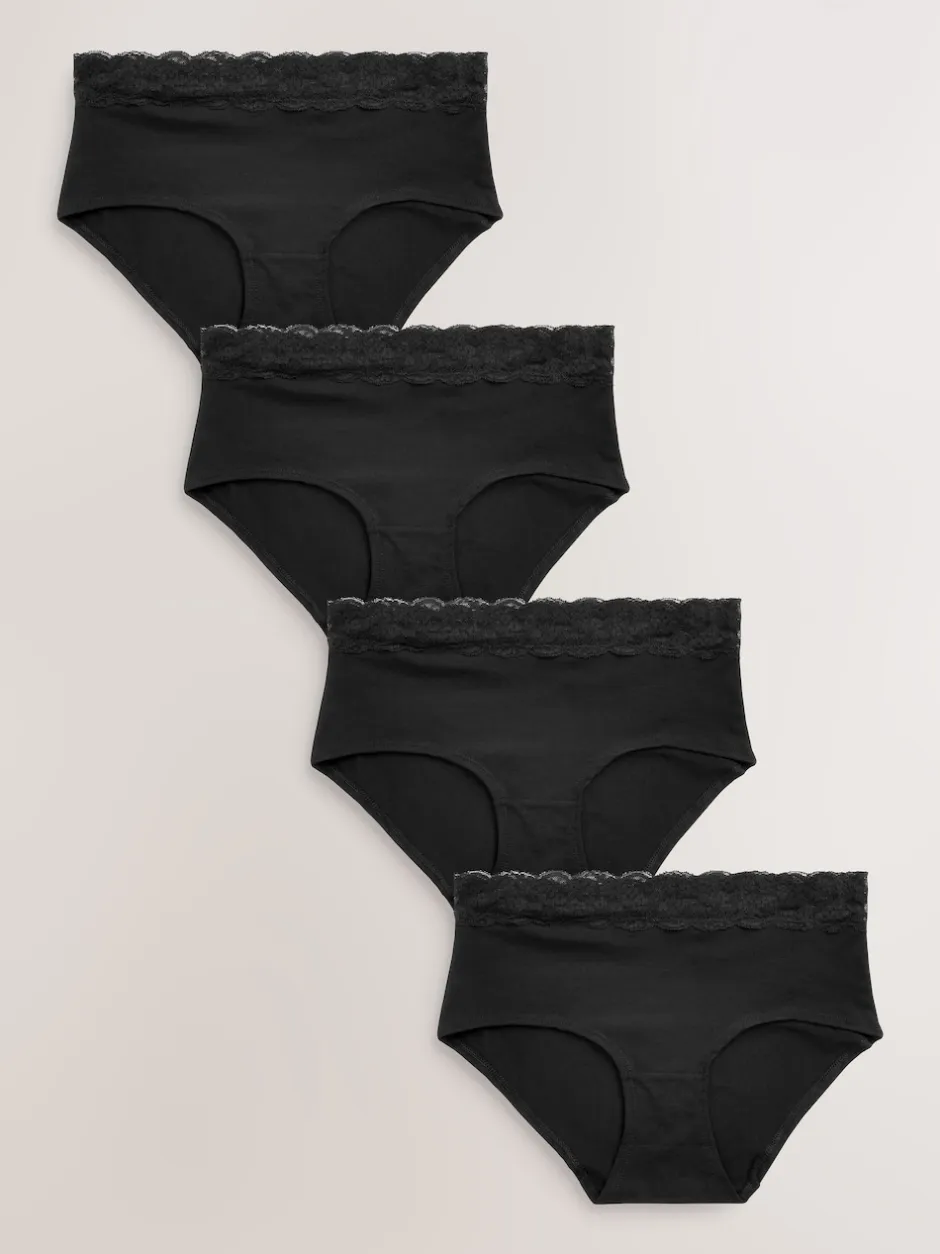 Next Noir – Lot de 4 culottes en coton et dentelle Mi-long Hot