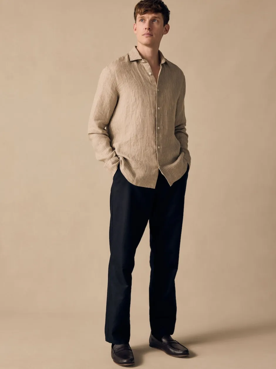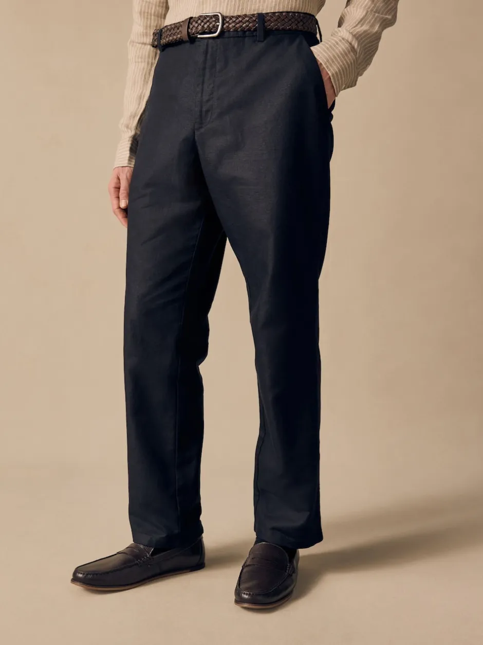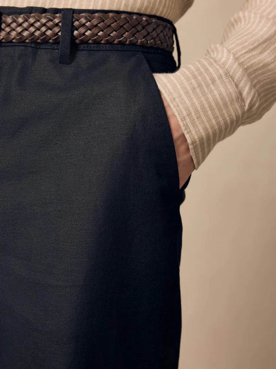 Next Noir – Pantalon élégant en lin et coton Blend à ceinture coupe classique Hot