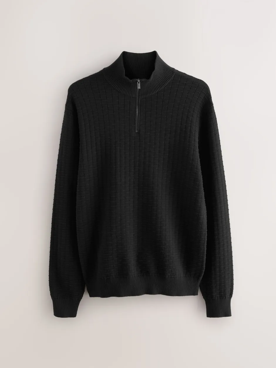 Soyez le premier à laisser votre avis sur “Next Noir – Pull N.premium en coton riche en coton haut de gamme texturé à col zippé Outlet” Annuler la réponse