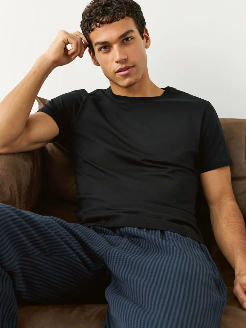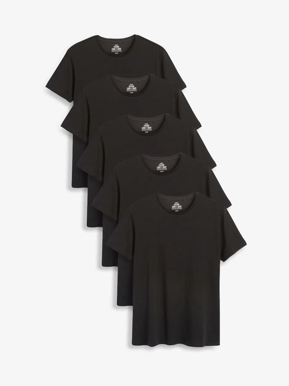 Next Noir – Slim Fit (Slim Fit) – T-shirts de superposition en coton 100 %, lot de 5 Outlet