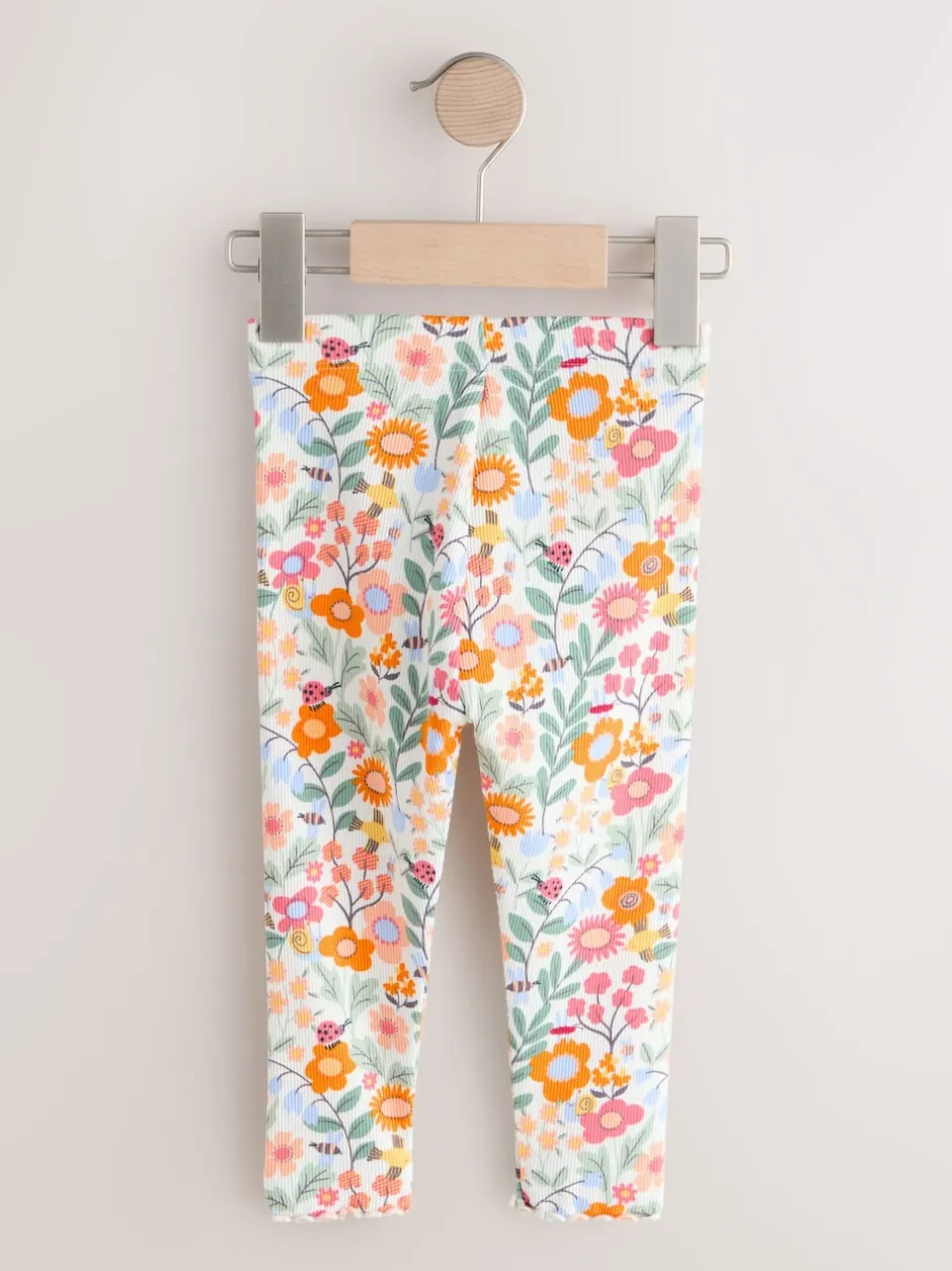 Next Orange à petites fleurs – Leggings côtelés (3mois-7ans)