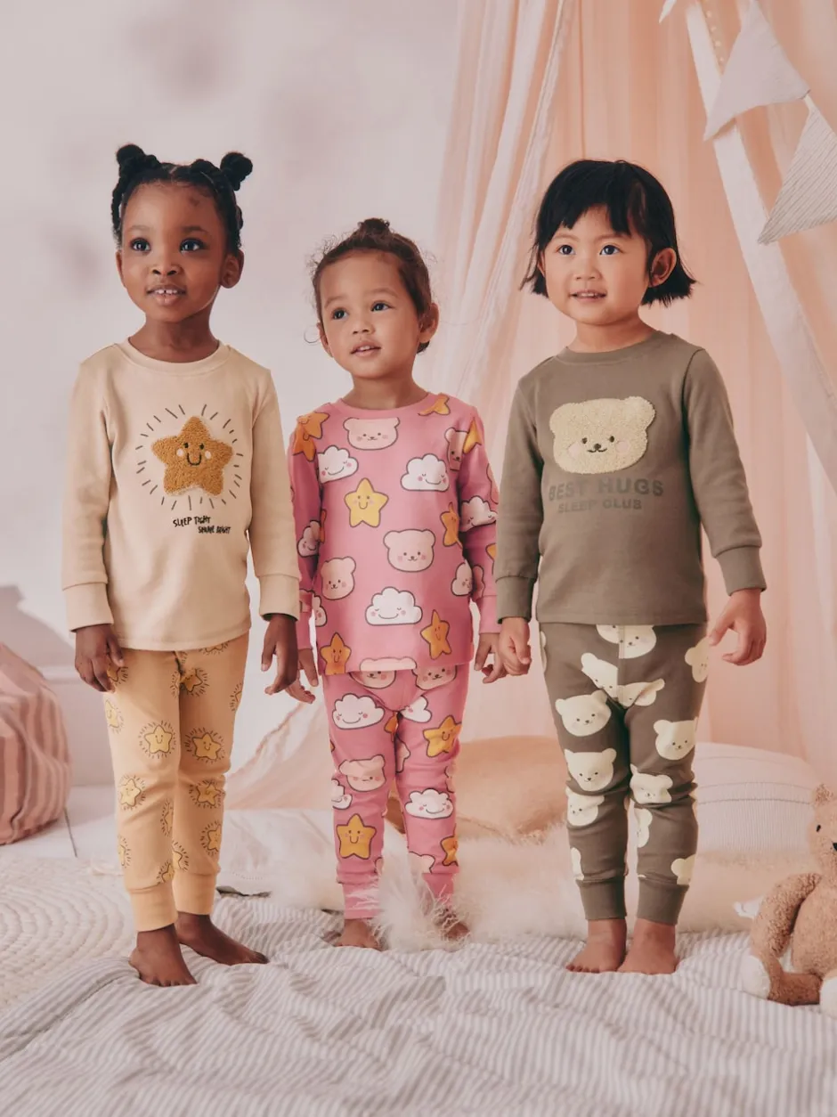 Next Ours marron/étoile – Lot de 3 pyjamas Snuggle (9mois-9ans)