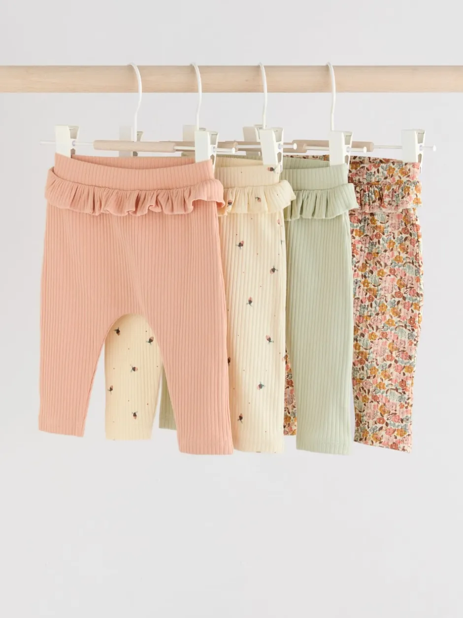 Next – Paquet de jambières pour bébé 4 (0mois-2ans) Vert sauge/corail/fleurs Clearance