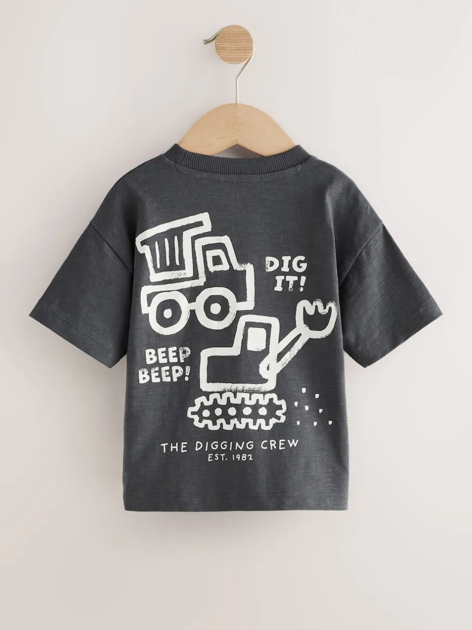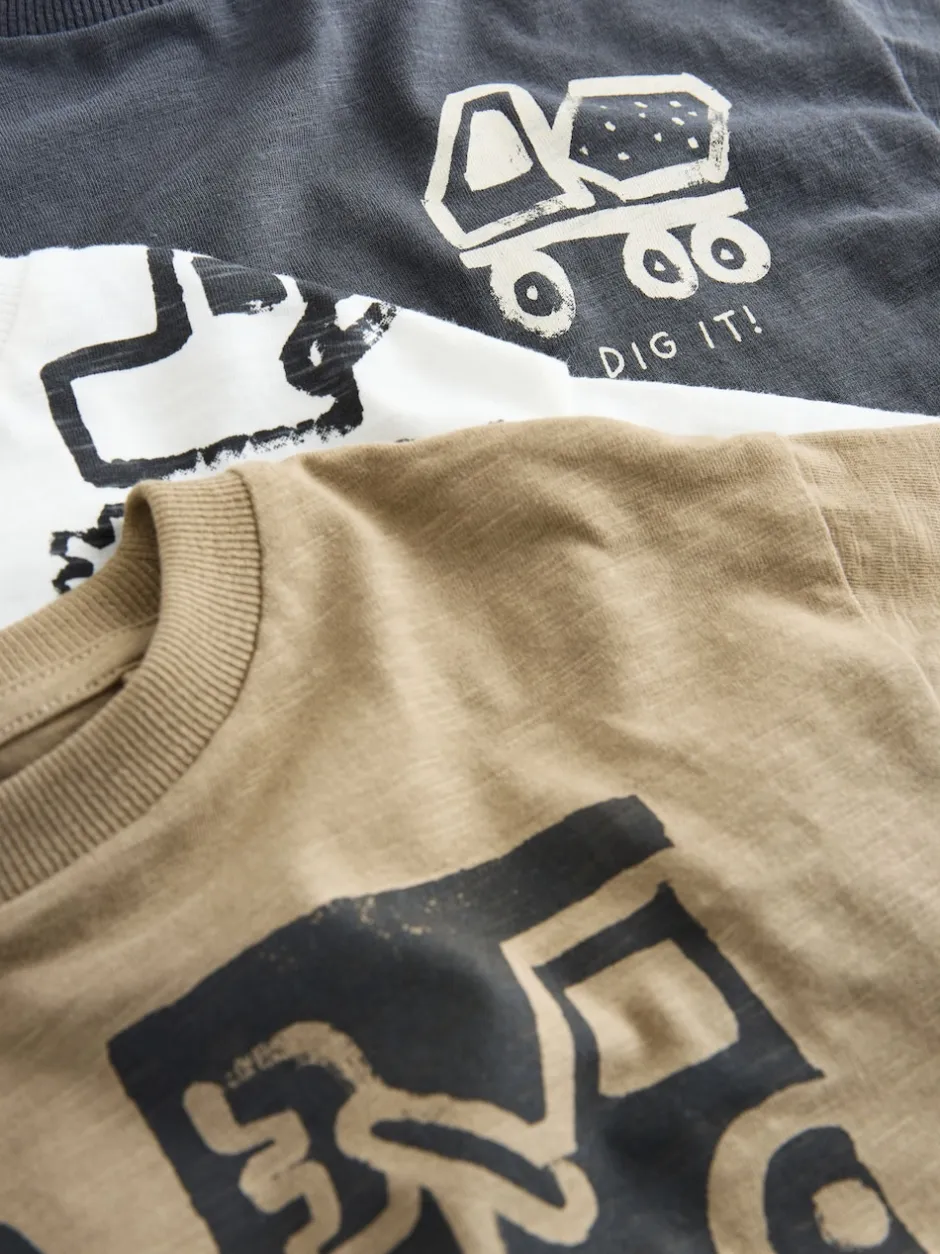 Next Pelleteuse noire – T-shirts imprimés graphiques à manches courtes Lot de 3 (3mois7ans) Sale