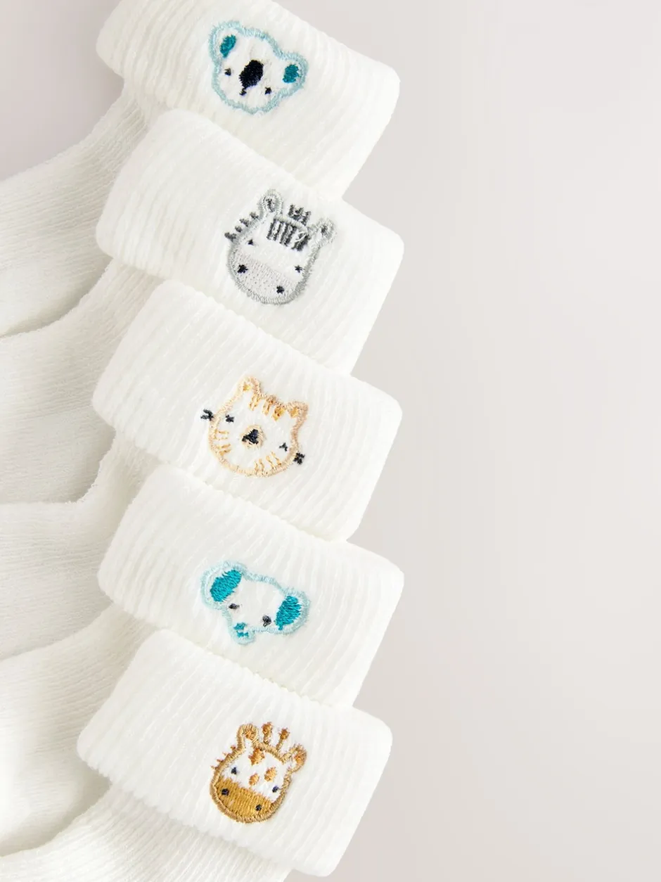 Next Personnage blanc – Chaussettes à roulettes brodées 5 Lot (0mths-2yrs) Sale