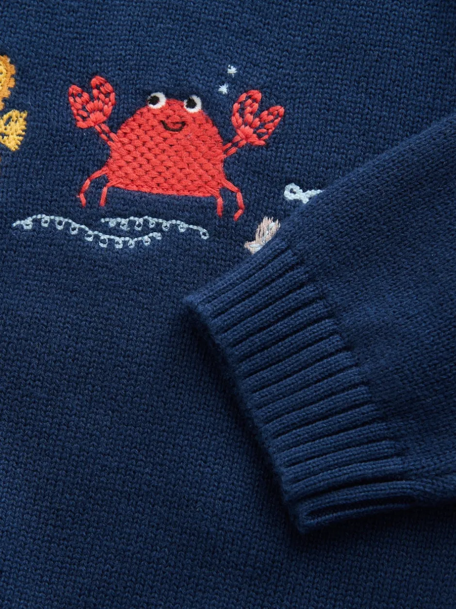 Next – Personnage Pull Col rond en maille (3mois-7ans) Vie marine bleu marine