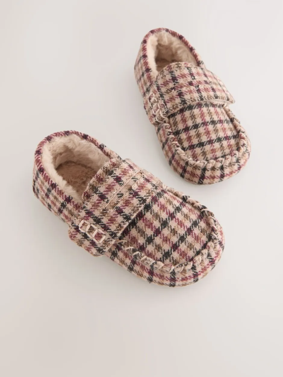 Next plaid Marron – Chaussons style mocassins à fermeture par contact