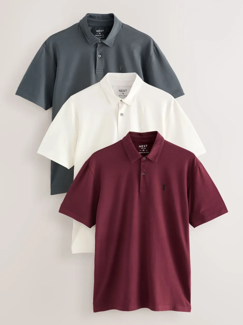 Next – Polo en jersey Manches courtes 3 Pack Rouge bordeaux/gris anthracite/crème écru Online