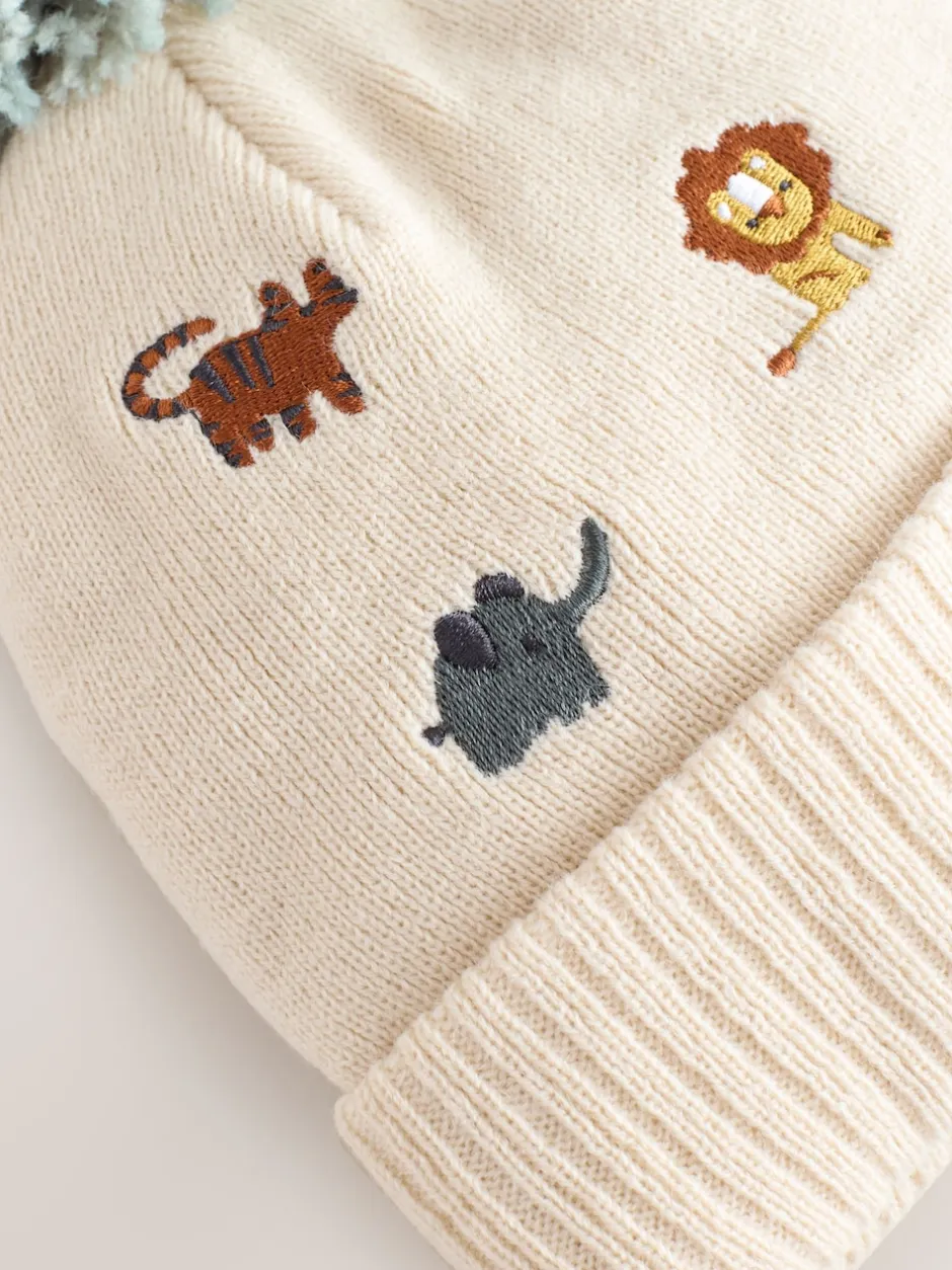 Next – Pom Bonnet Chapeaux (3mths-10yrs) Safari neutre brodé Hot