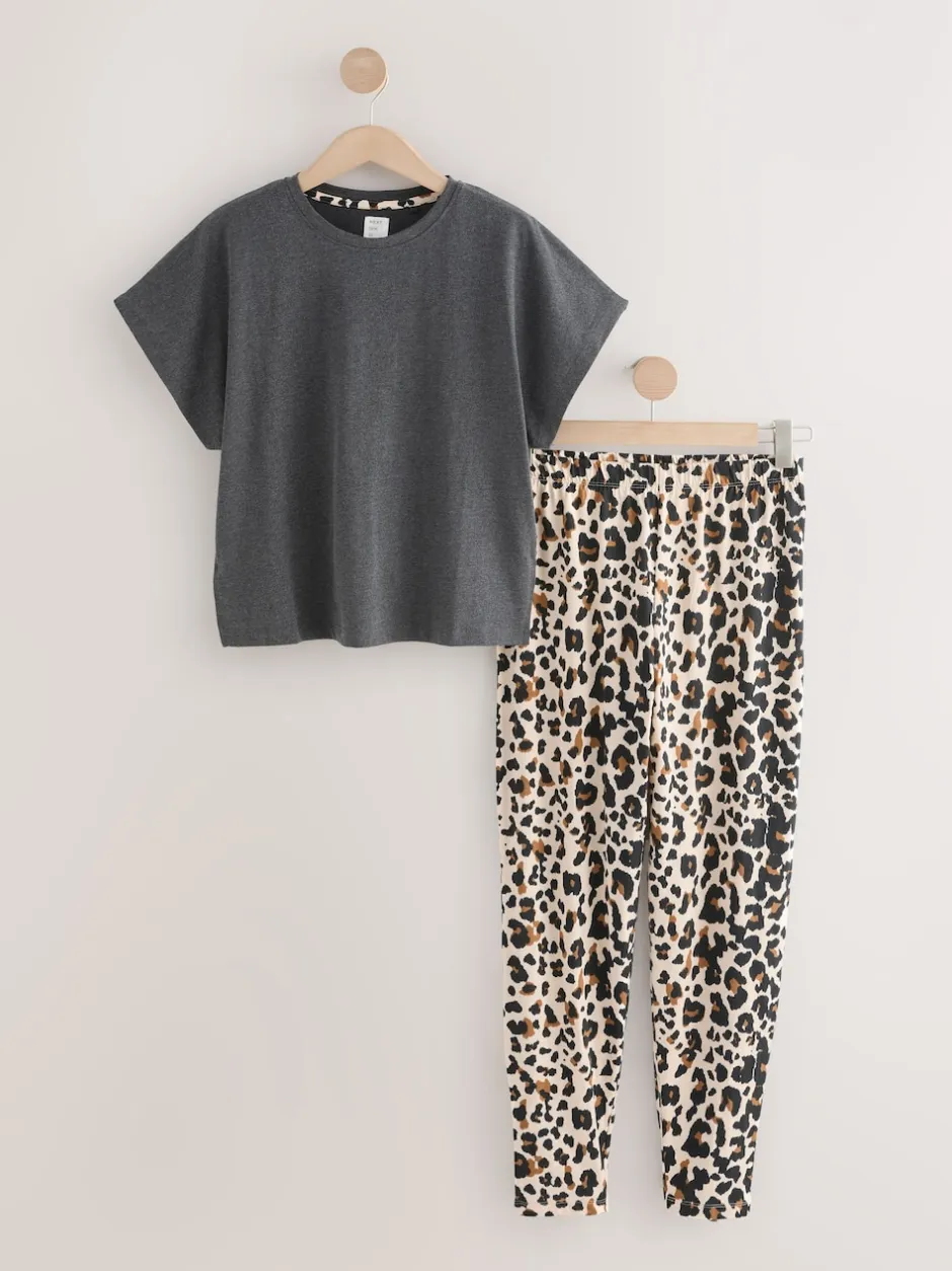 Next – Pyjama à manches courtes Anthracite imprimé léopard Clearance