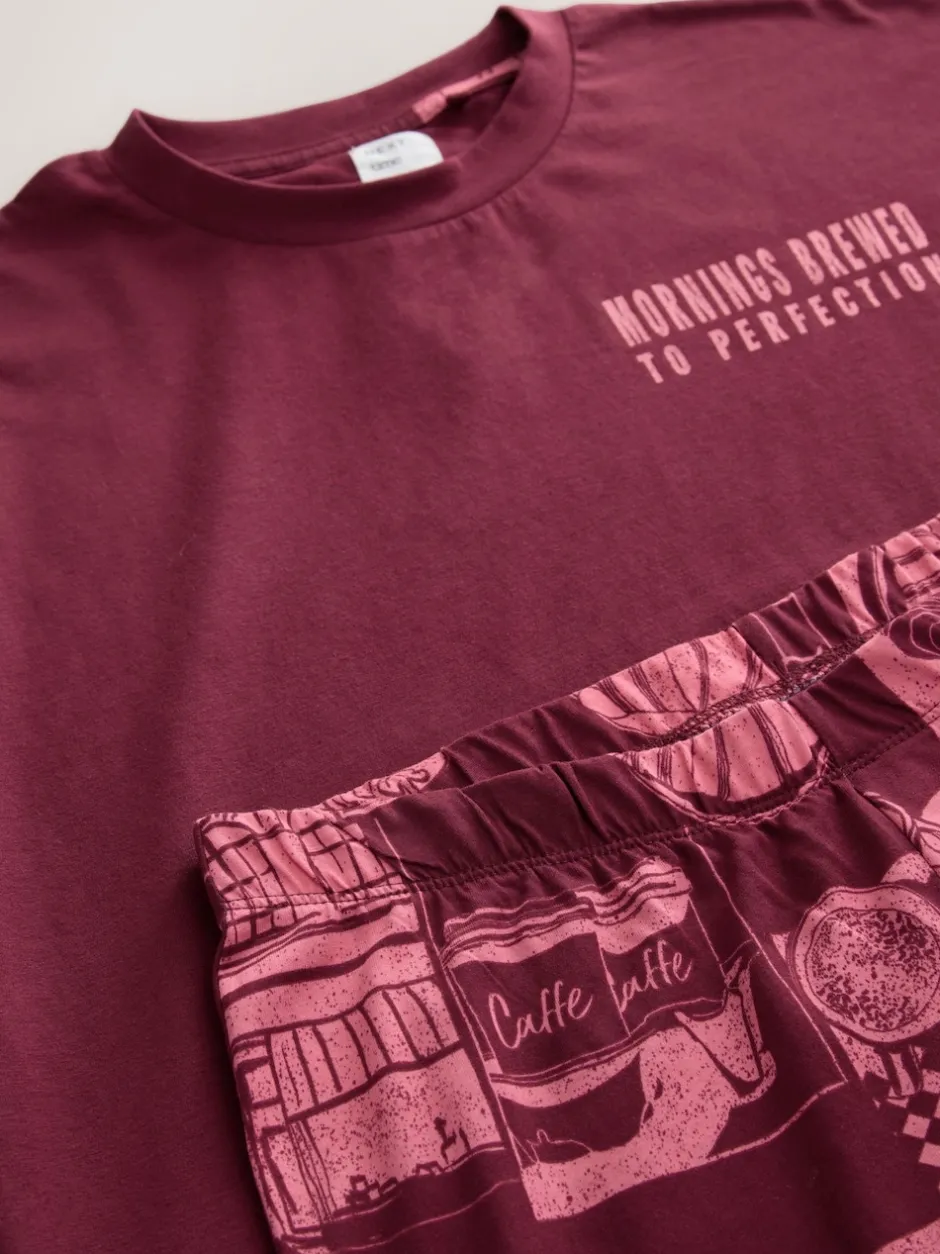 Next – Pyjama à manches courtes en coton Rouge bordeaux New