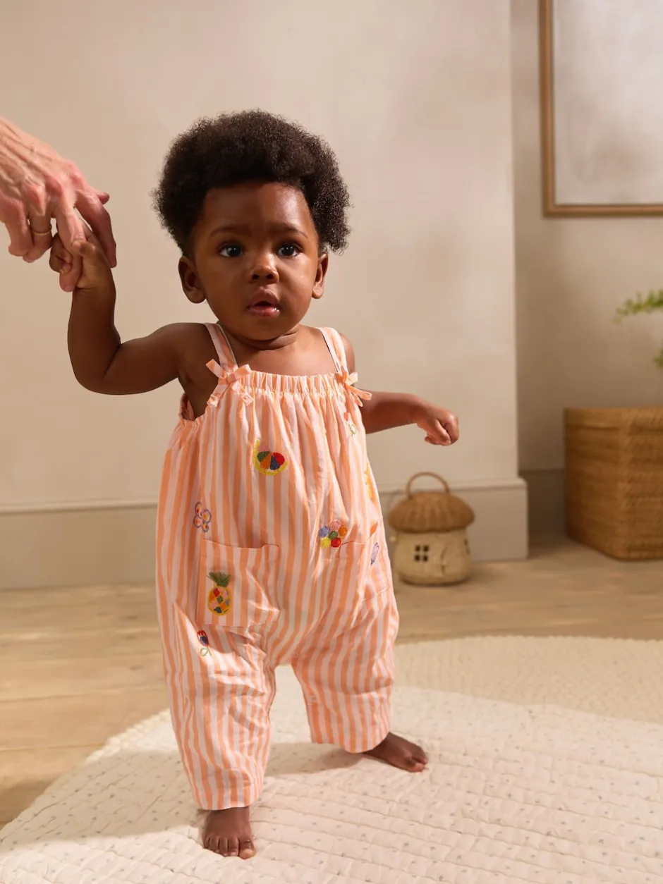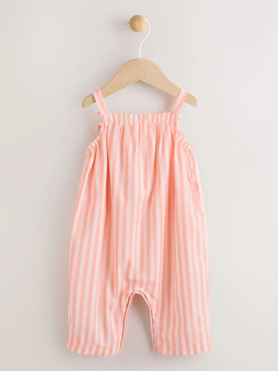 Next Rayé orange/blanc – Salopette tissée 100% coton bébé (0mois-3ans)
