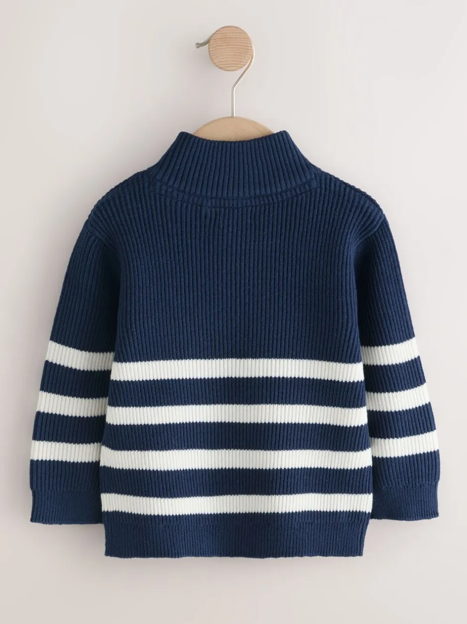 Next Rayure bleu marine/écru – Pull tricoté à fermeture éclair (3mths-7yrs) Clearance