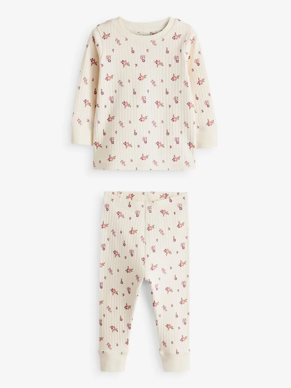 Next Rose/ Blanc Ditsy – Pyjama Rib Se blottir 3 Pack (9mois-12ans) Discount