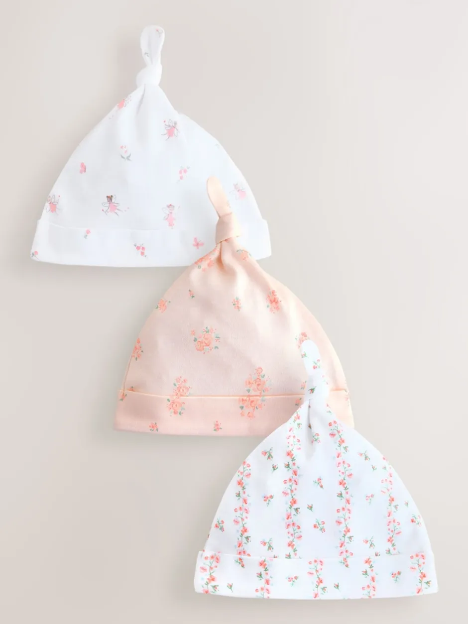 Next Rose/Blanc – Lot de 3 bonnets bébé noués (0-12mois) Outlet