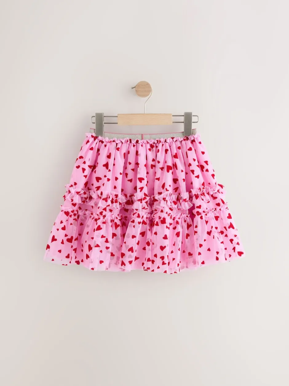 Next Rose/rouge motif cœurs – Jupe en maille à enfiler (3-16ans) Clearance