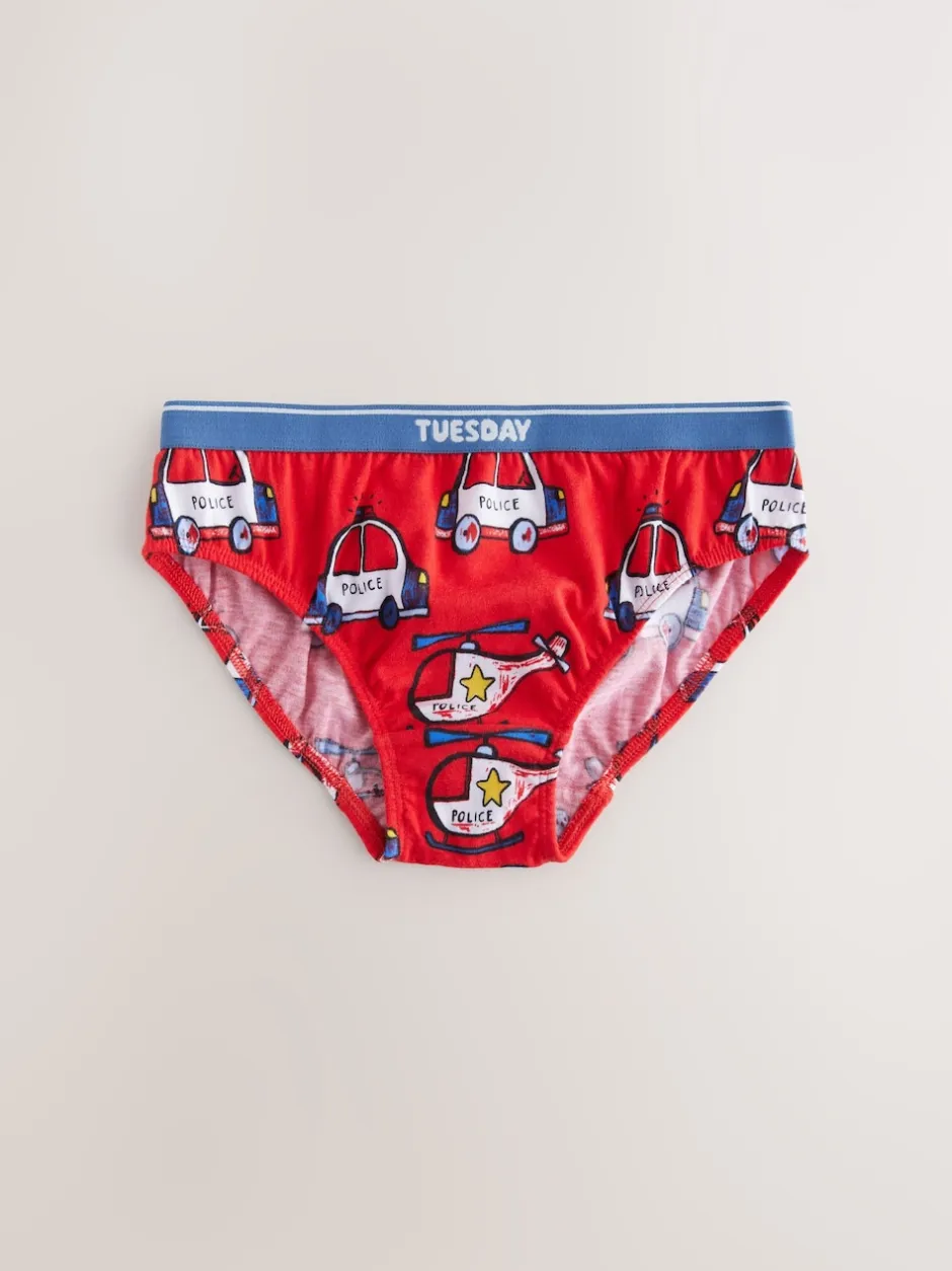 Next Rouge/bleu motif véhicules d’urgence – Lot de 7 slips en coton (1.5-10ans) New