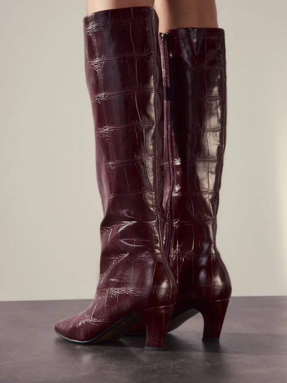 Next Rouge bordeaux – Bottes Forever Comfort® hauteur genou à talons incurvés Online