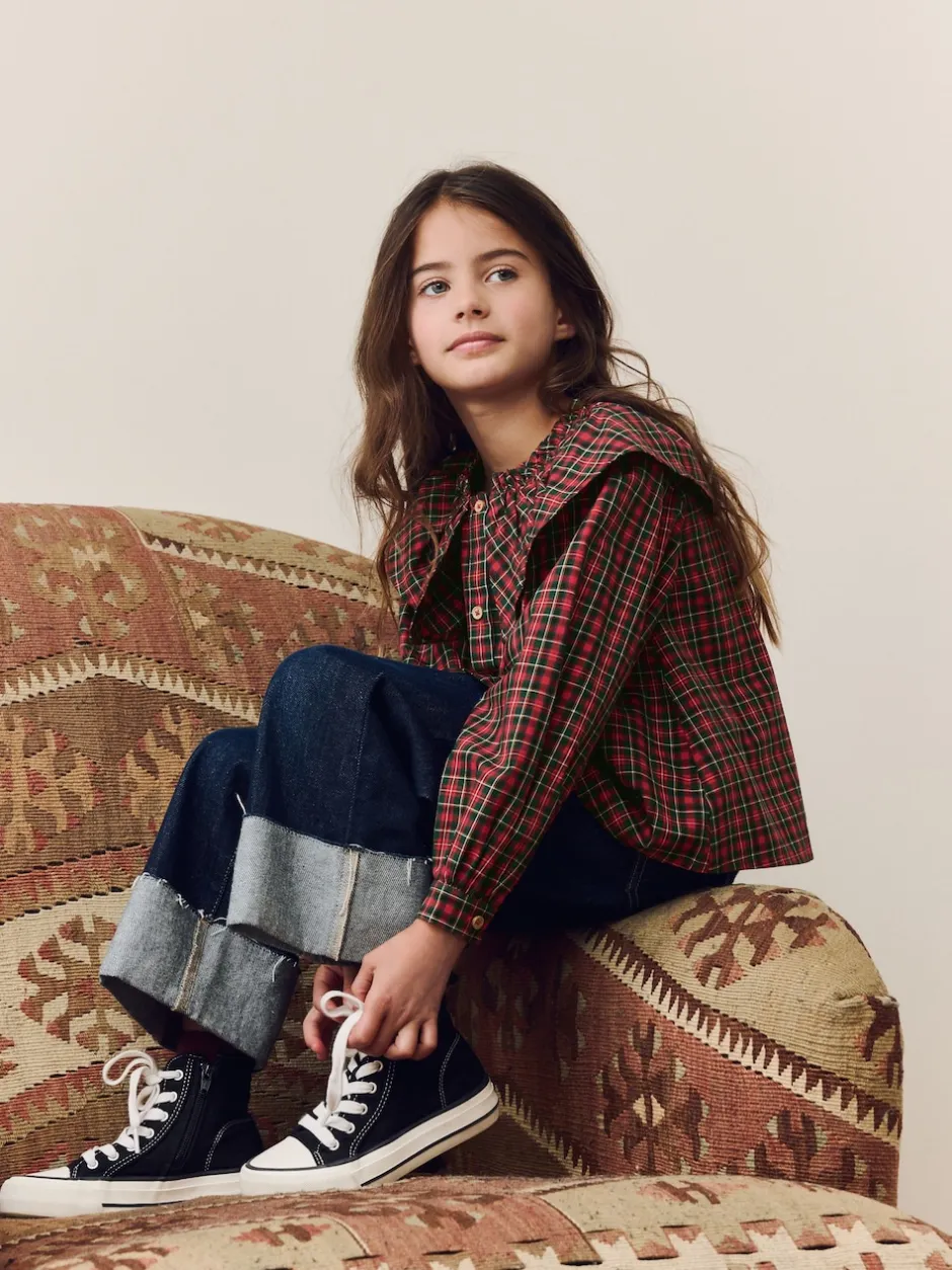 Next Rouge – Chemisier à carreaux avec col à volants (3-16ans) Clearance