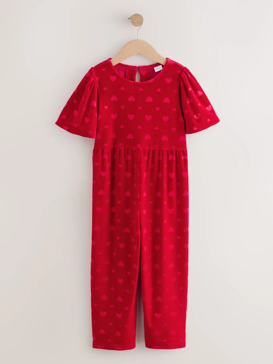 Next Rouge – Combinaison en velours à motif cœur en relief (3-16ans) Clearance