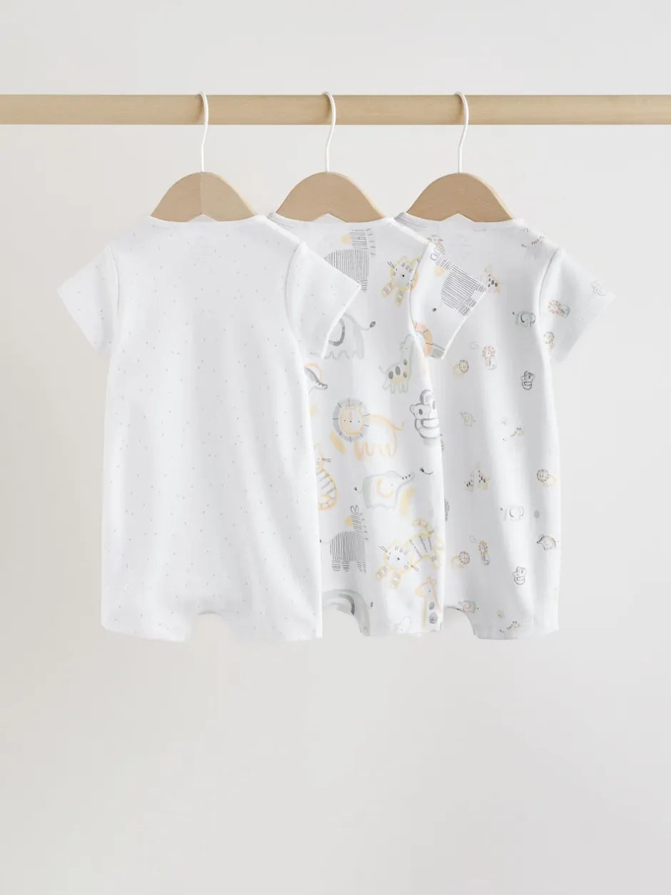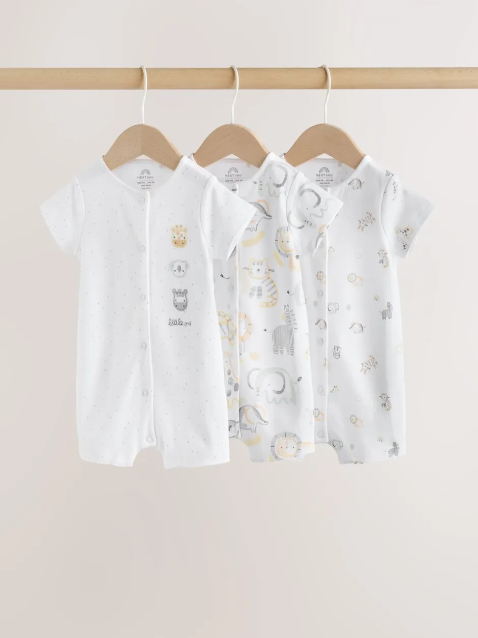 Next Safari blanc Animal brodé – Barboteuse Jersey Baby 3 Pack Outlet
