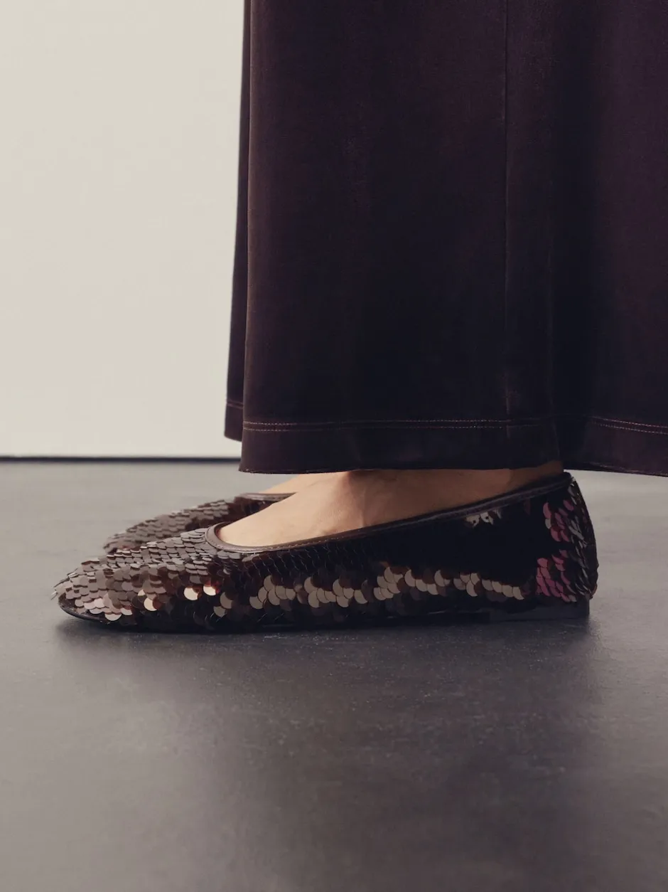 Next Sequins marron chocolat – Chaussures plates à sequins Forever Comfort® à bout rond Best
