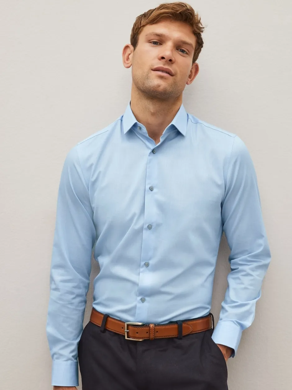 Next – Slim Fit (Slim Fit) – Chemise élégante texturée facile d’entretien à poignets simples Bleu