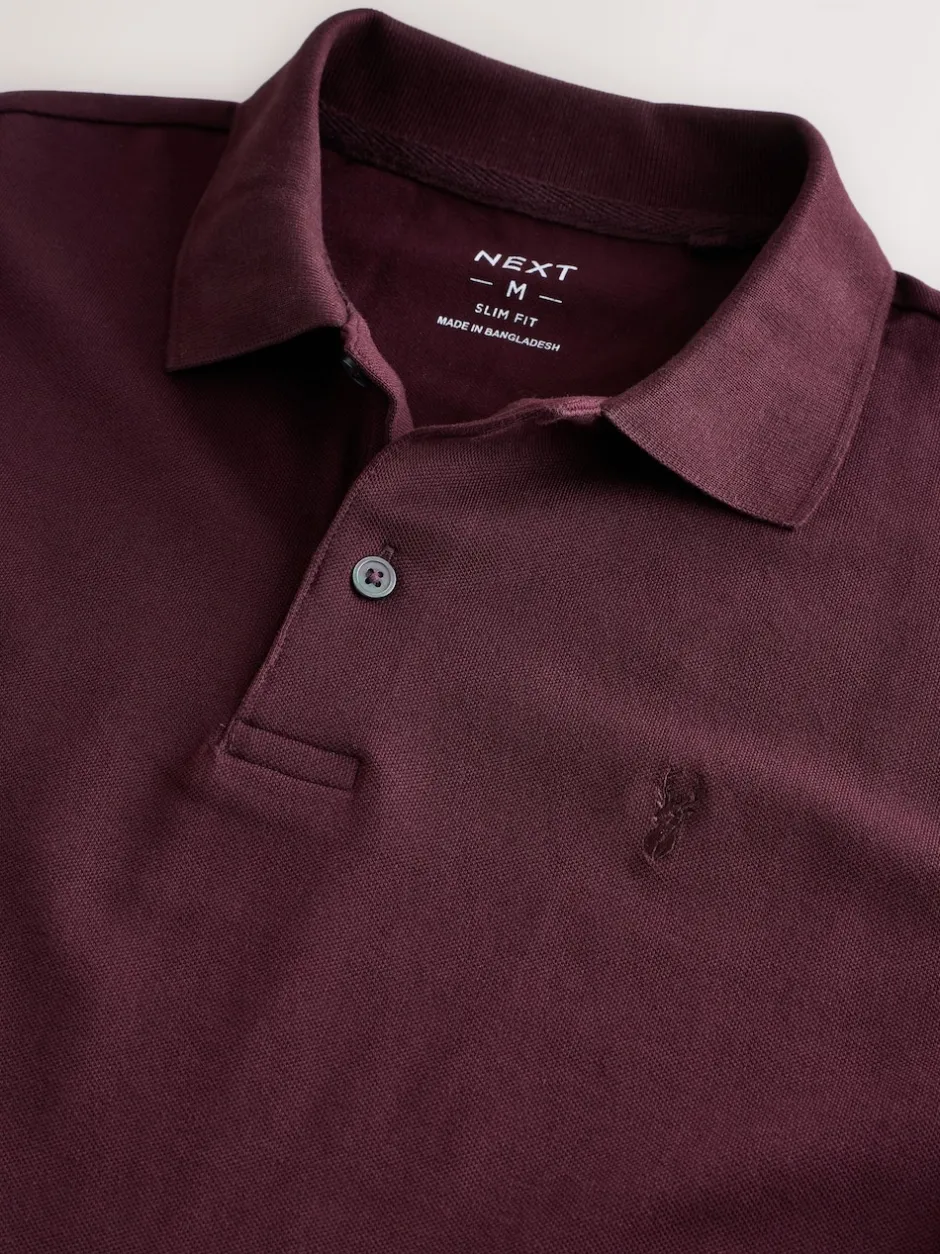 Next – Slim Fit (Slim Fit) – Polo Manches courtes Pique Rouge bordeaux Sale
