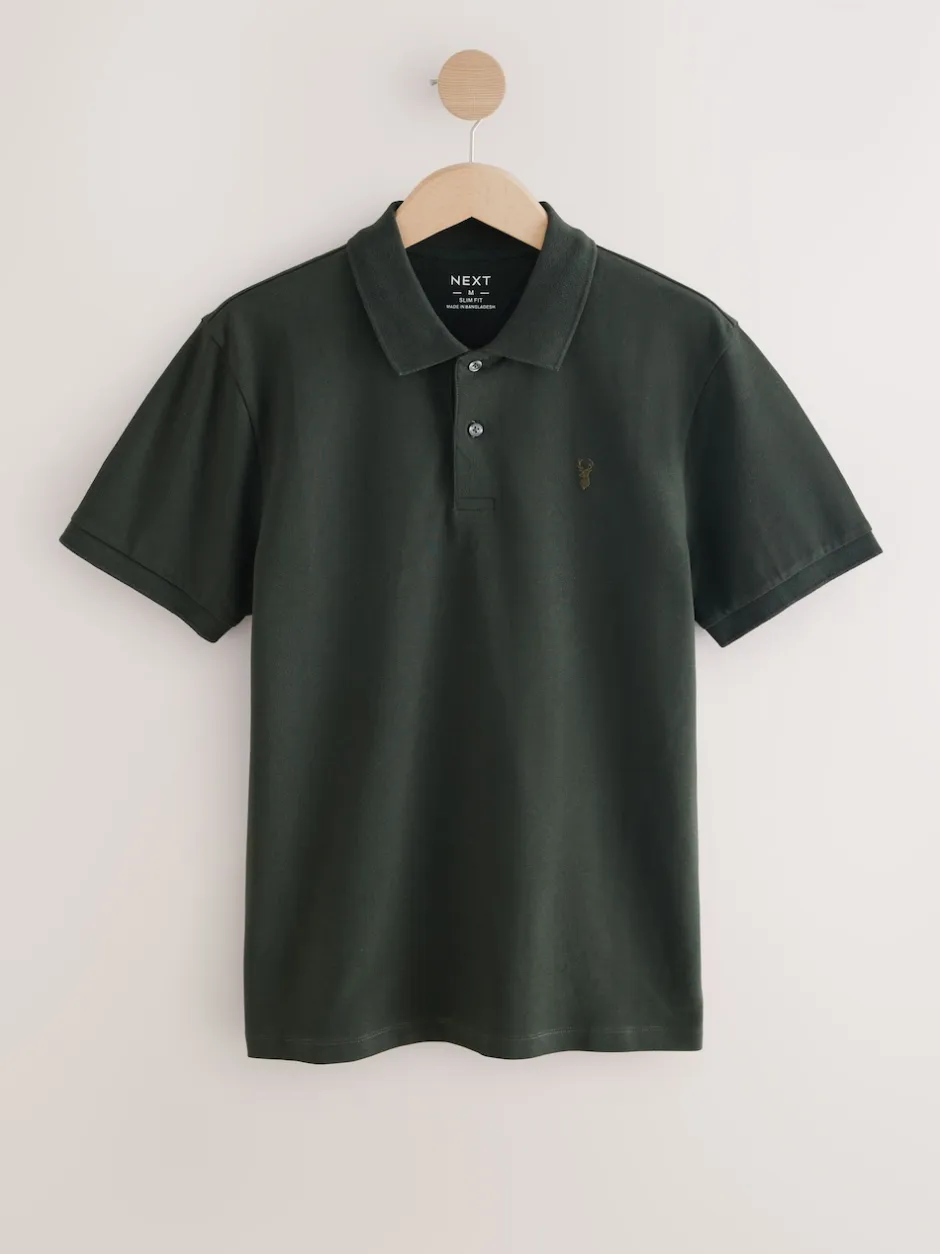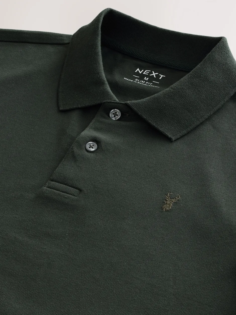 Next – Slim Fit (Slim Fit) – Polo Manches courtes Pique Vert olive riche