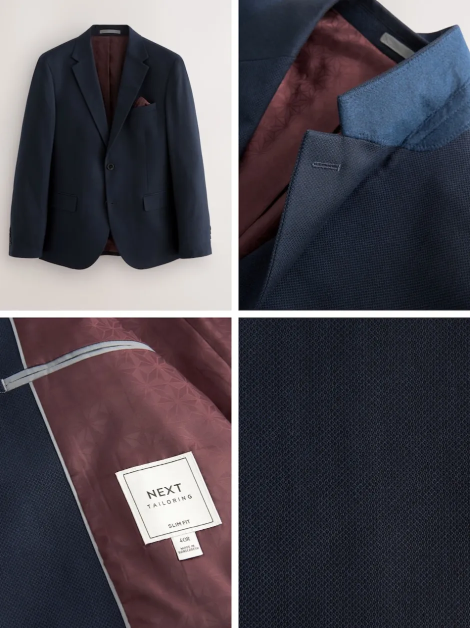 Next – Slim Fit (Slim Fit) – Veste de costume texturée Bleu marine Discount