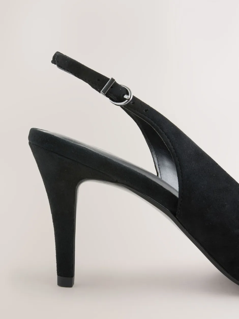 Next Suede noire – Chaussures à talons Forever Comfort® pointus en cuir avec nœud et bride arrière