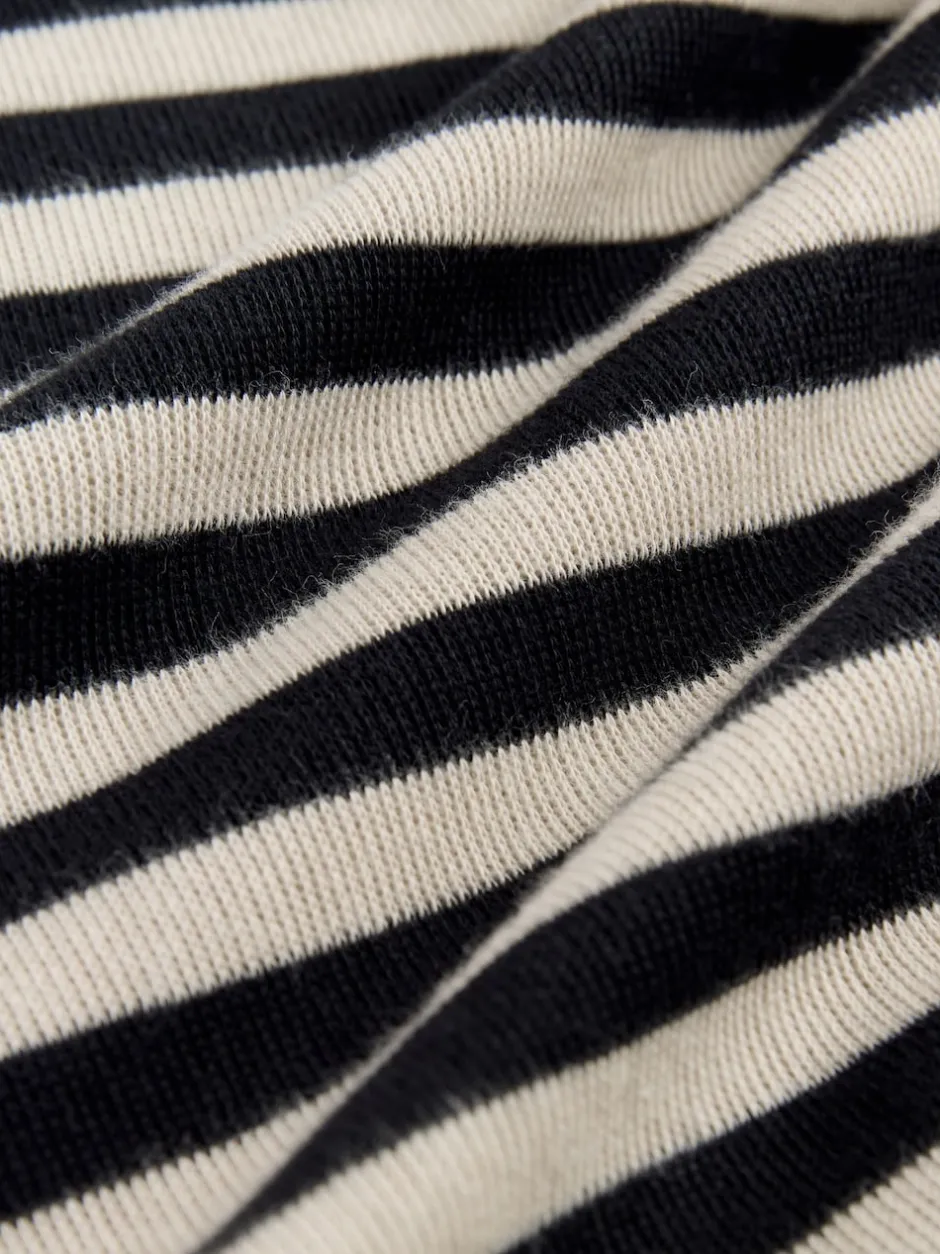 Lavable en machine. 90 % coton, 10 % polyester recyclé.