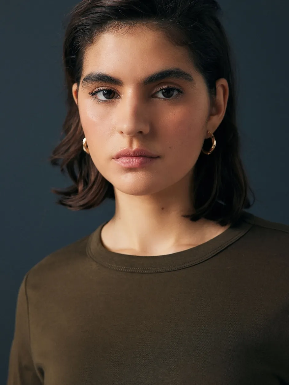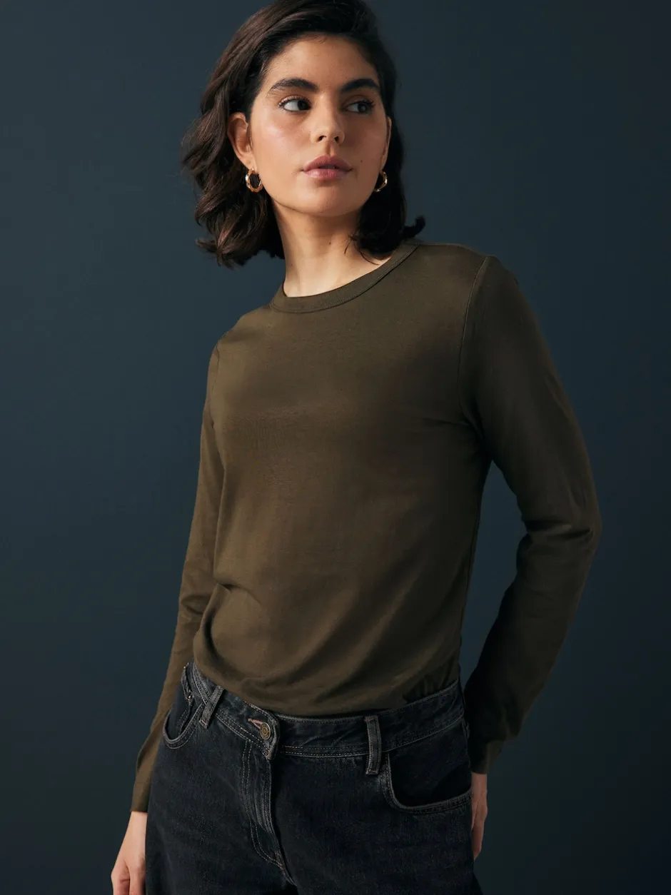 Next – T-shirt à manches longues de cou d’équipage Vert olive Sale