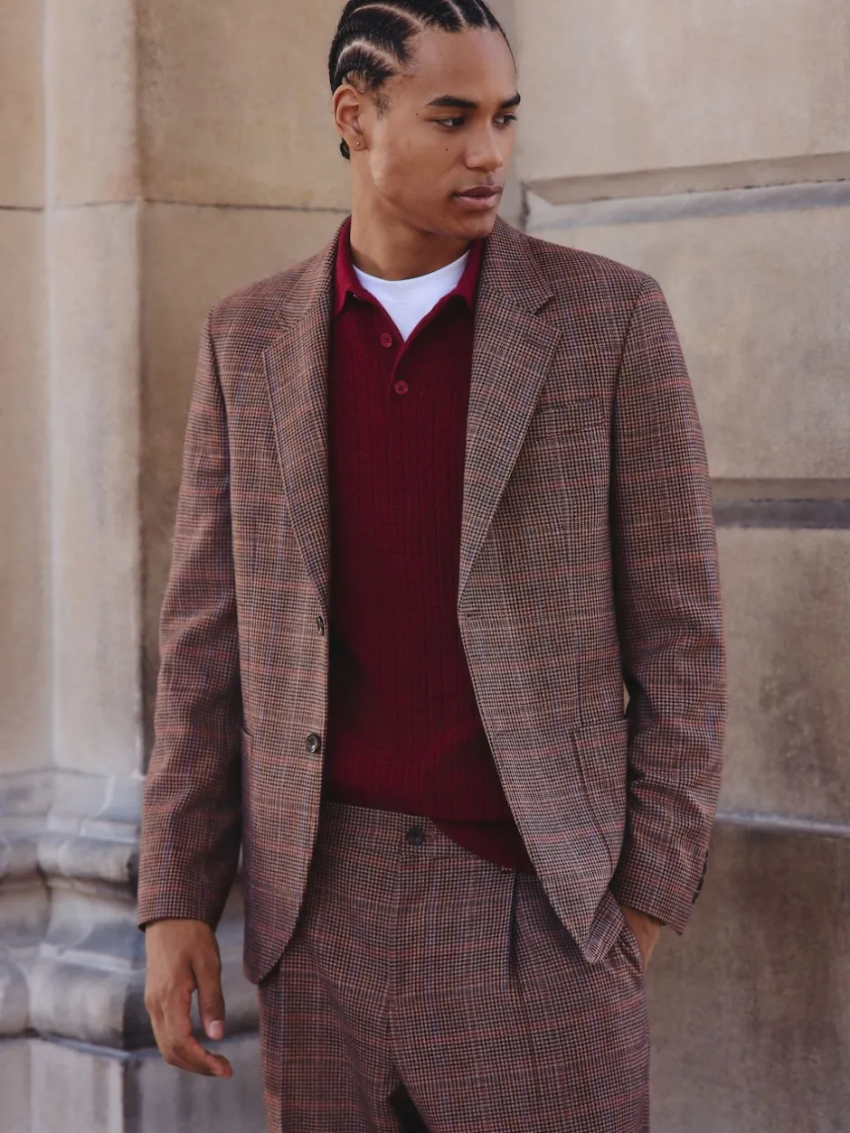 Next Tan/Rouge – Veste de costume slim à carreaux en mélange de laine Best