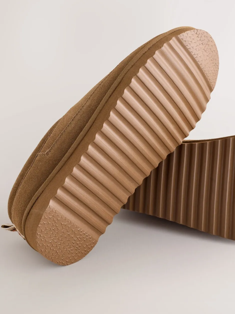 Next Taupe (Taupe) – Chaussons doublés en daim Signature avec fausse fourrure Hot