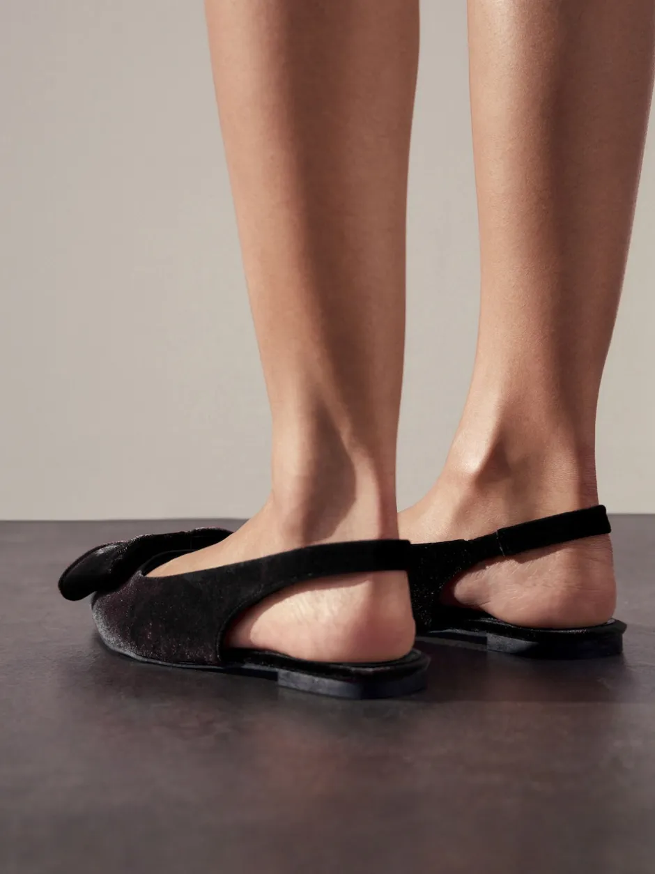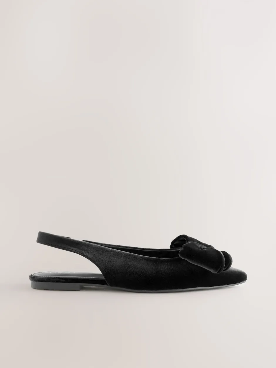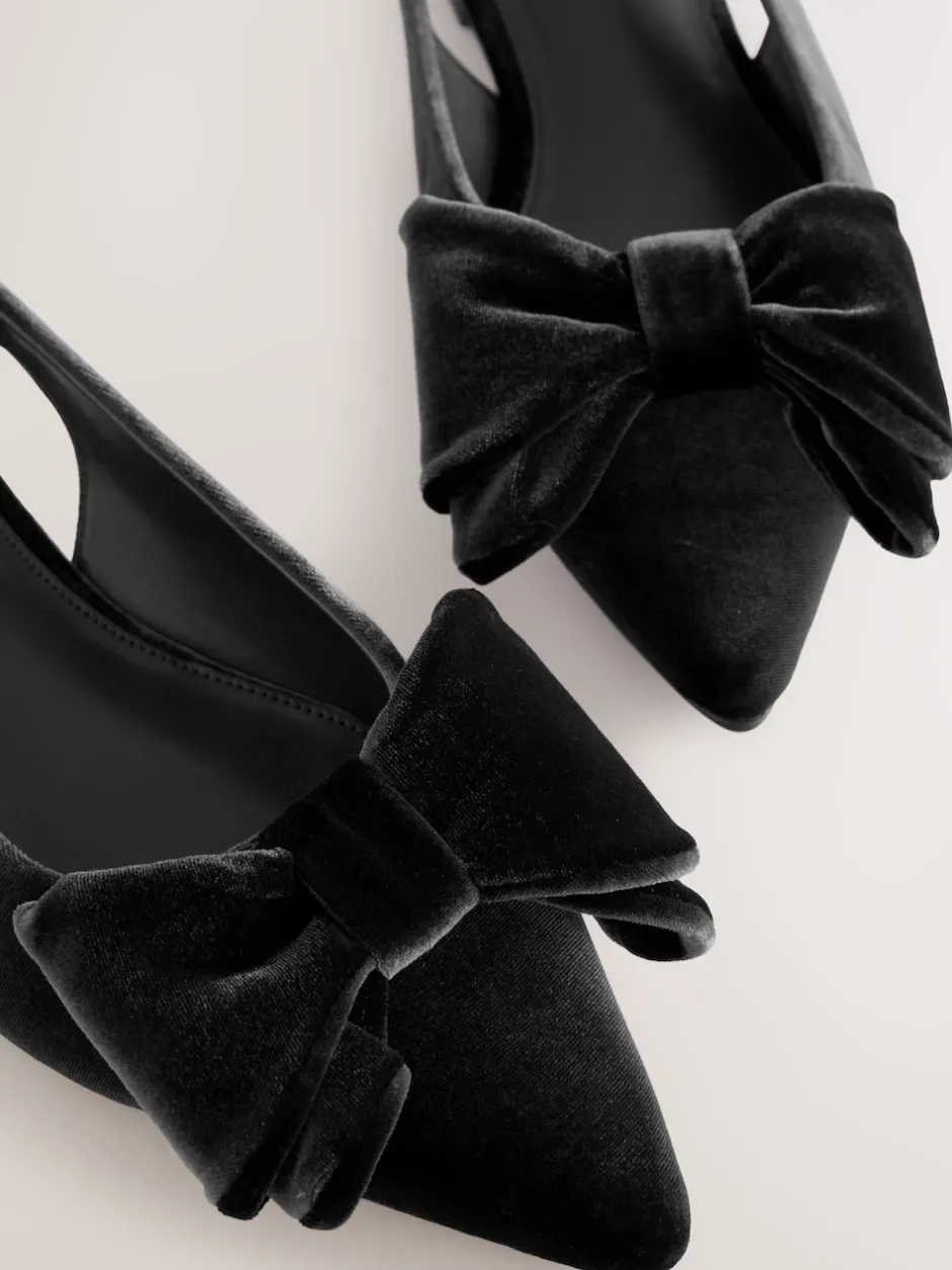 Next Velours noir – Chaussures plates Forever Comfort® à bout pointu et bride arrière à nœud Hot