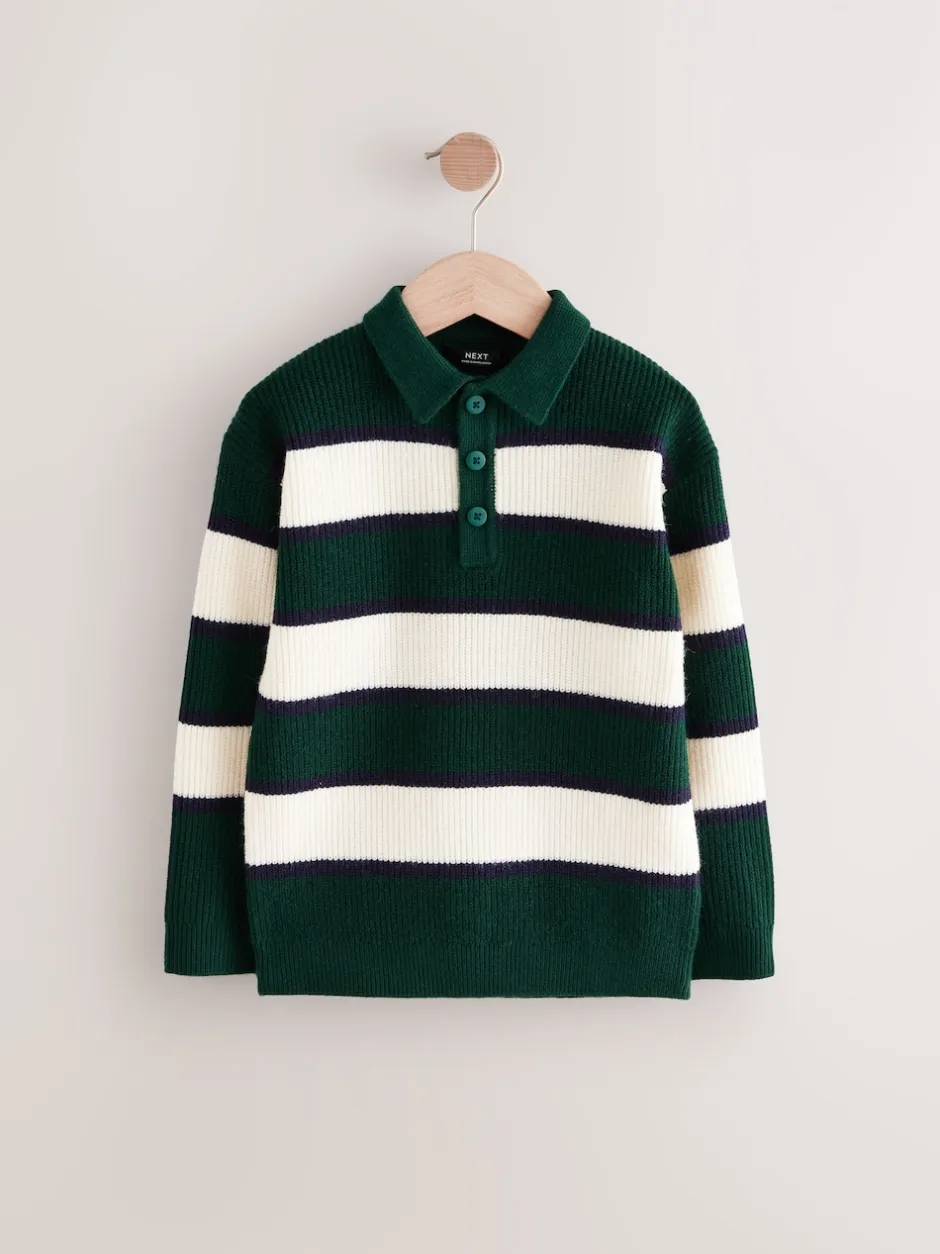 Next Vert/Écru Rayure – Chemises de rugby en maille (3-16ans) Sale