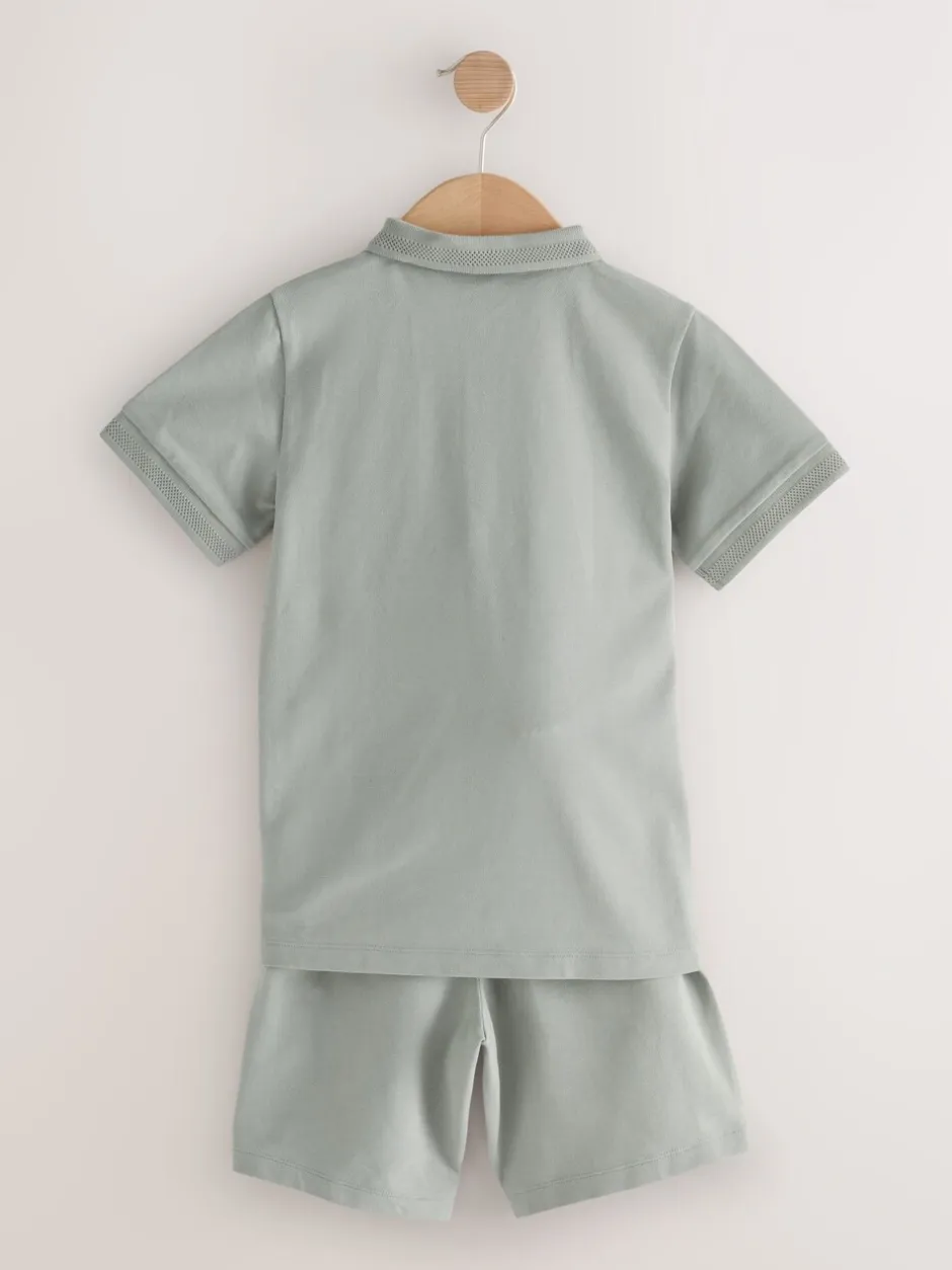 Lavable en machine. Polo et short 95% coton, 5% élasthanne.