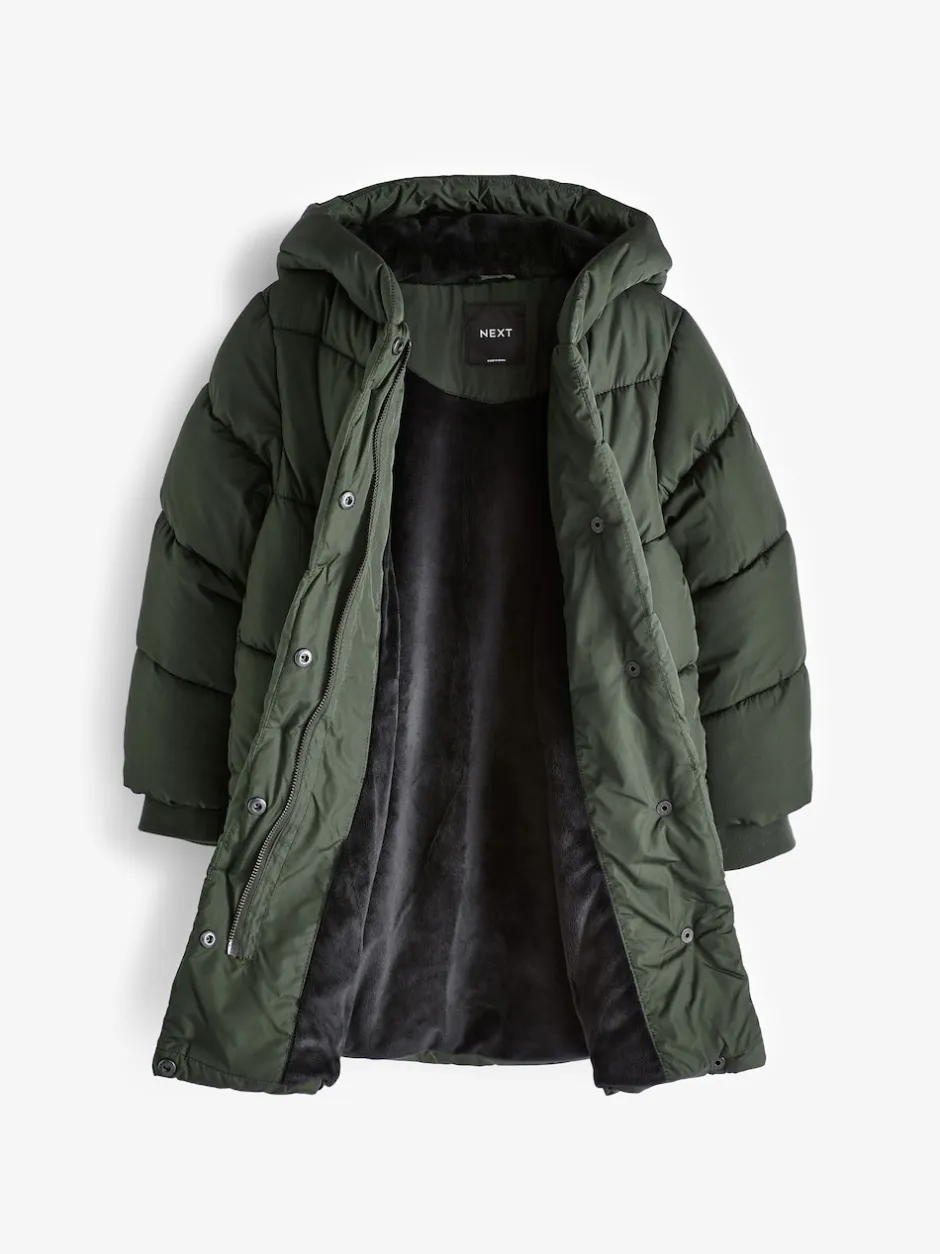 Next Vert kaki – Résistant à la douche Faux Fur Lined À capuche Doudounes (3-16yrs)