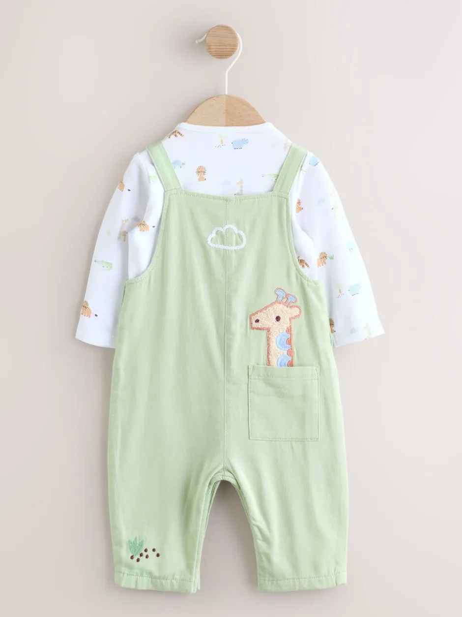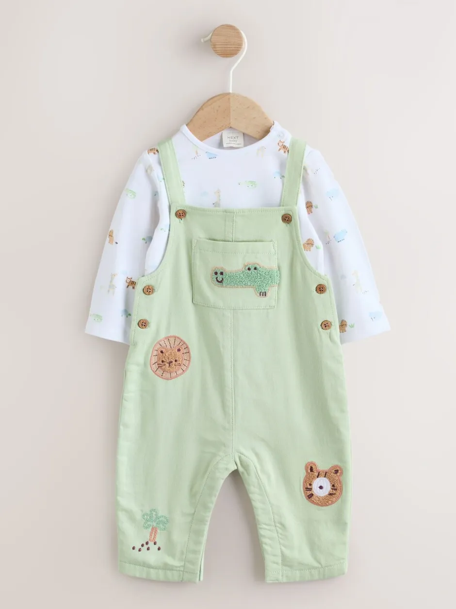 Next Vert motif safari Animal – Ensemble salopette et body en sergé pour bébé (0mths-2yrs) Outlet