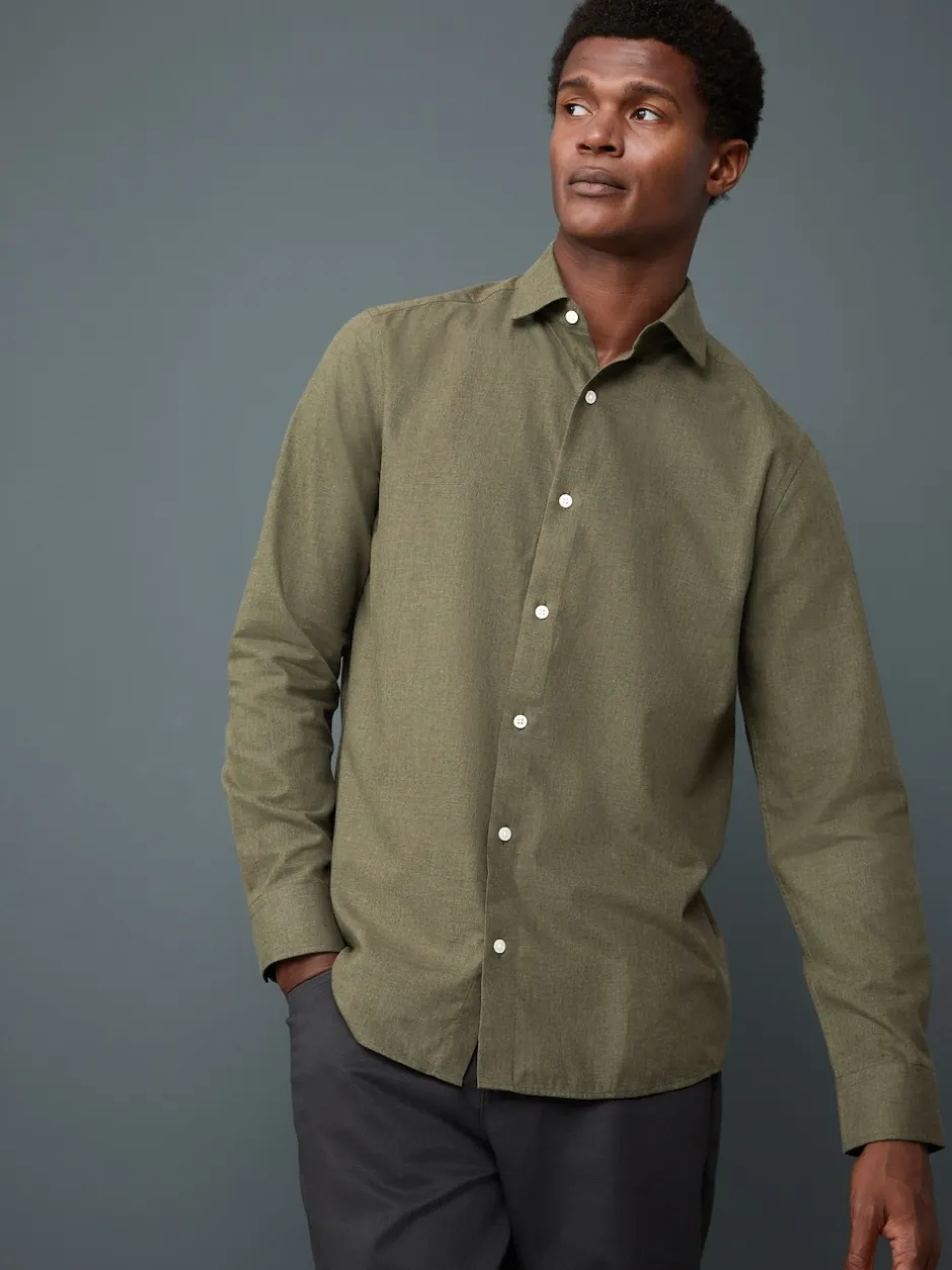 Next Vert olive – Chemise élégante douce au toucher à manches longues Outlet