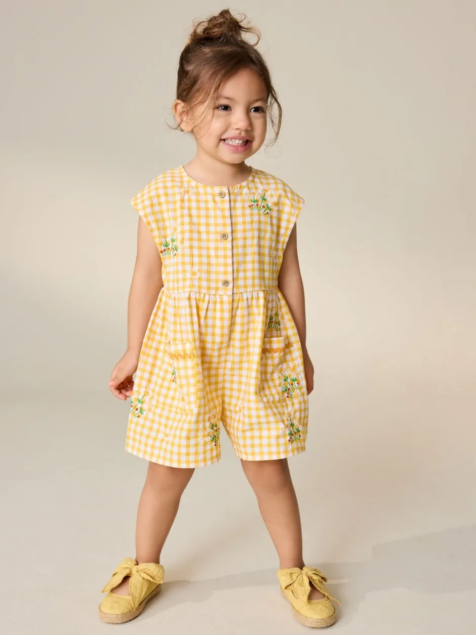 Next Vichy jaune brodé – Combinaison sans manches (3mois à7ans) Best